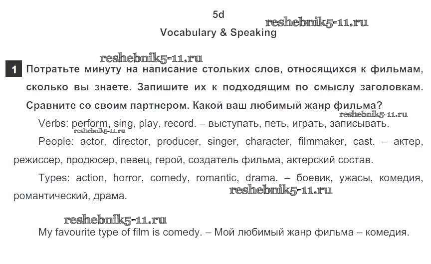 Готовая домашняя работа с ответами по Английскому языку за 9 класс Ваулина, Эванс, Дули, Подоляко Учебник Spotlight Просвещение 2010 ФГОС - Часть 5d 1