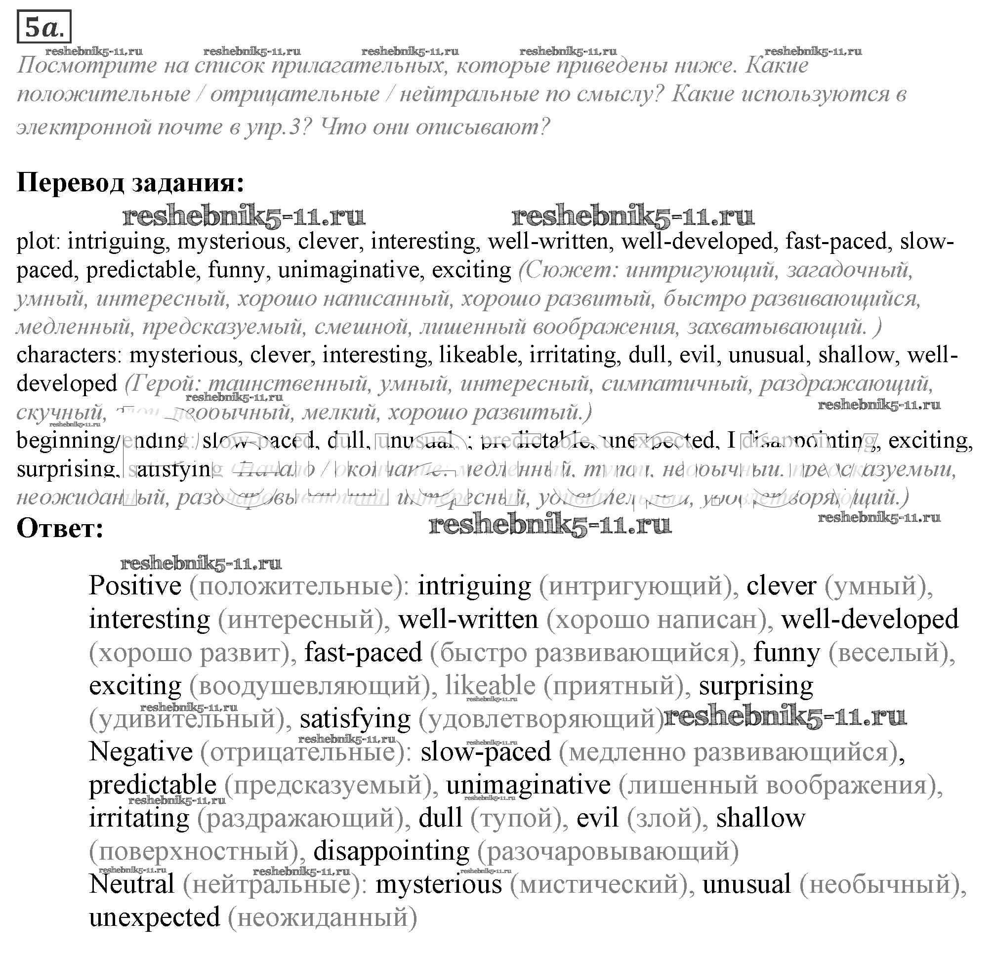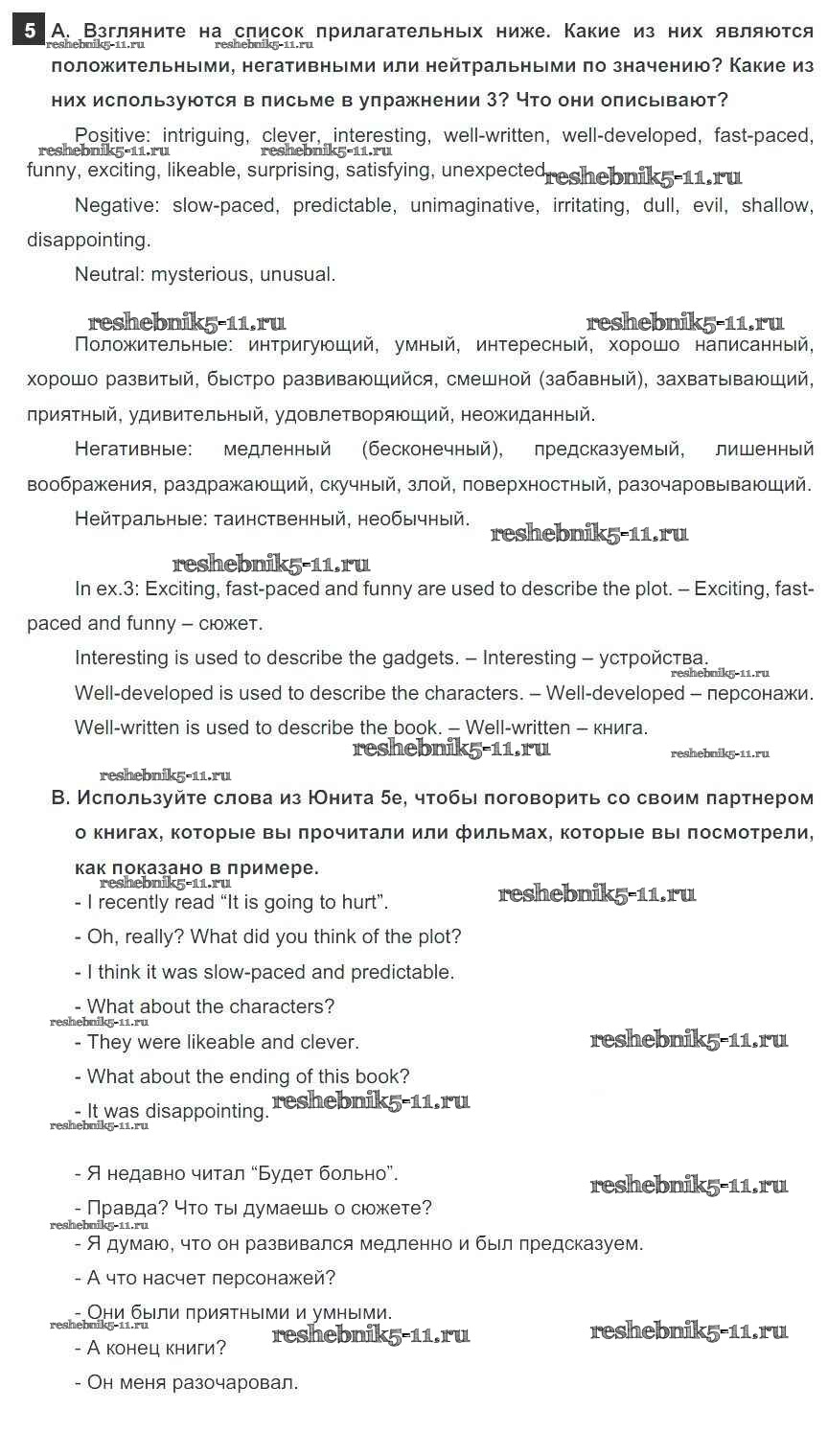 Готовая домашняя работа с ответами по Английскому языку за 9 класс Ваулина, Эванс, Дули, Подоляко Учебник Spotlight Просвещение 2010 ФГОС - Часть 5e 5a