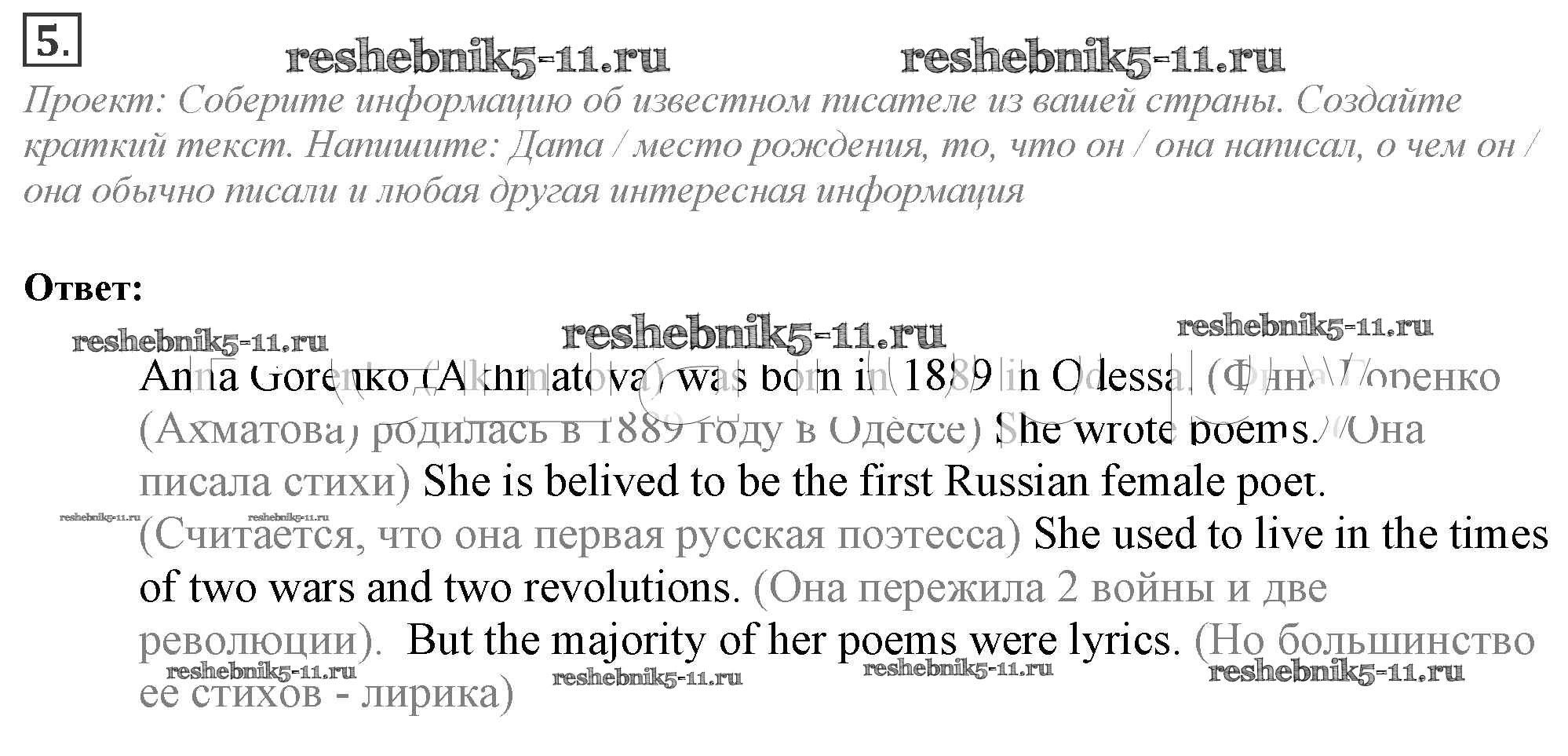 Готовая домашняя работа с ответами по Английскому языку за 9 класс Ваулина, Эванс, Дули, Подоляко Учебник Spotlight Просвещение 2010 ФГОС - Culture Corner 5