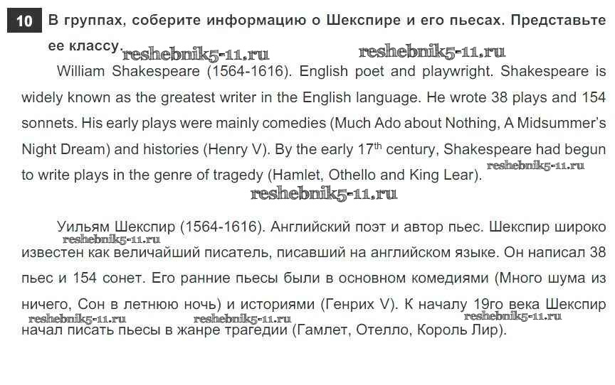 Решебник 2 / модуль 5 / accross the curriculum Literature / 10