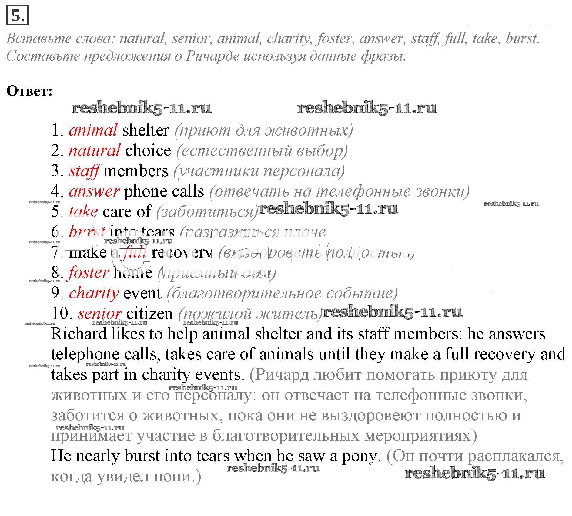 Готовая домашняя работа с ответами по Английскому языку за 9 класс Ваулина, Эванс, Дули, Подоляко Учебник Spotlight Просвещение 2010 ФГОС - Часть 6a 5