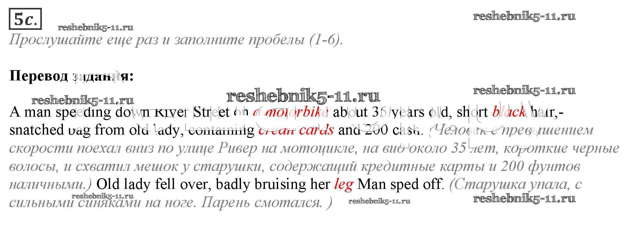 Готовая домашняя работа с ответами по Английскому языку за 9 класс Ваулина, Эванс, Дули, Подоляко Учебник Spotlight Просвещение 2010 ФГОС - Часть 6d 5c