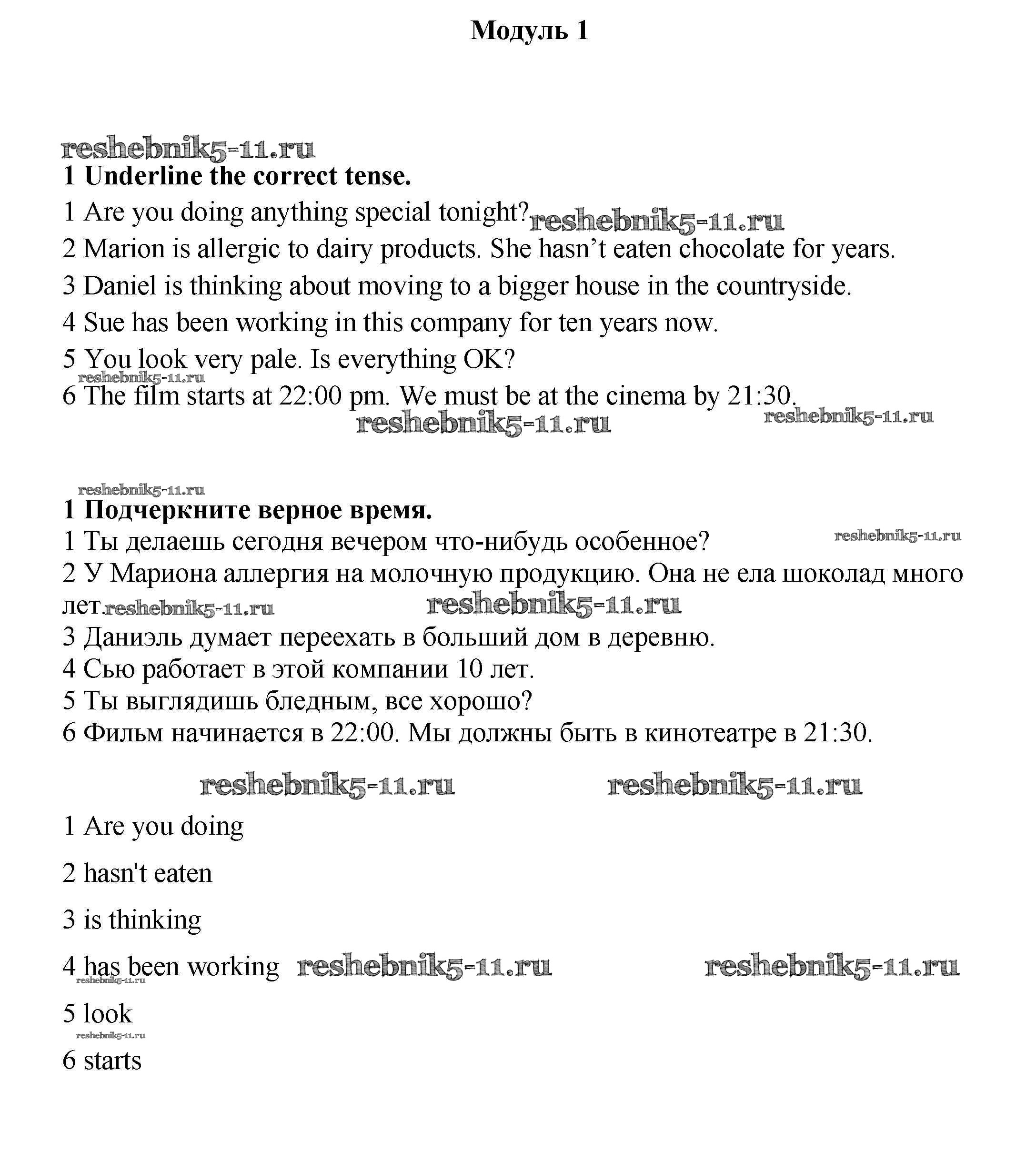 Готовая домашняя работа с ответами по Английскому языку за 9 класс Ваулина, Эванс, Дули, Подоляко Учебник Spotlight Просвещение 2010 ФГОС - Модуль 1 1