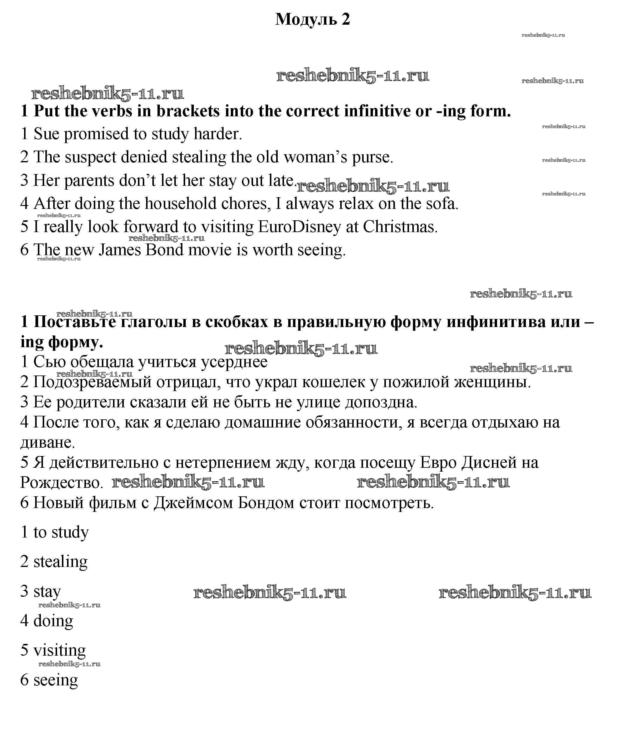 Готовая домашняя работа с ответами по Английскому языку за 9 класс Ваулина, Эванс, Дули, Подоляко Учебник Spotlight Просвещение 2010 ФГОС - Модуль 2 1
