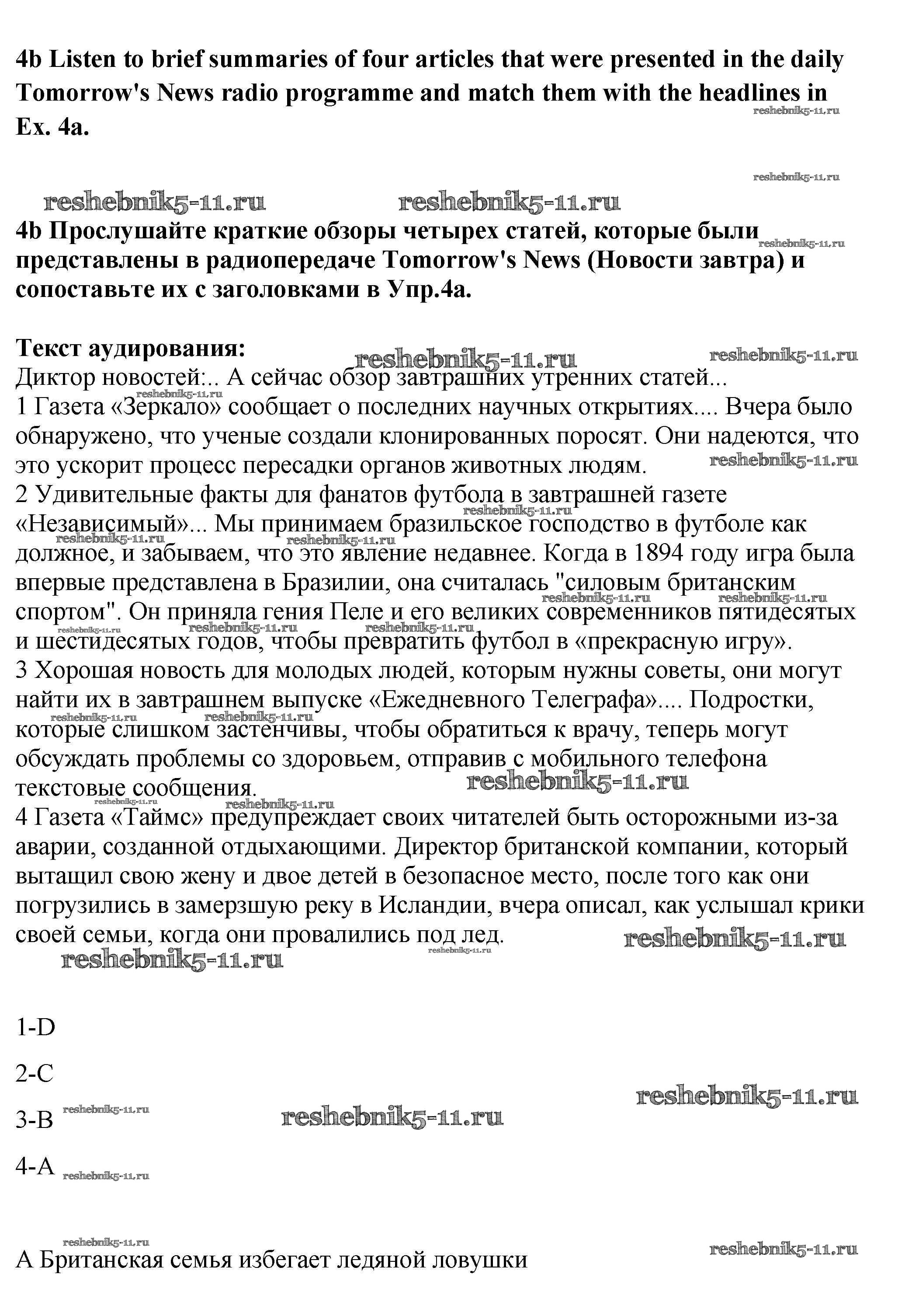 Готовая домашняя работа с ответами по Английскому языку за 9 класс Гроза, Дворецкая, Казырбаева, Клименко Учебник New Millennium Титул 2010 ФГОС - Lesson 1 4b