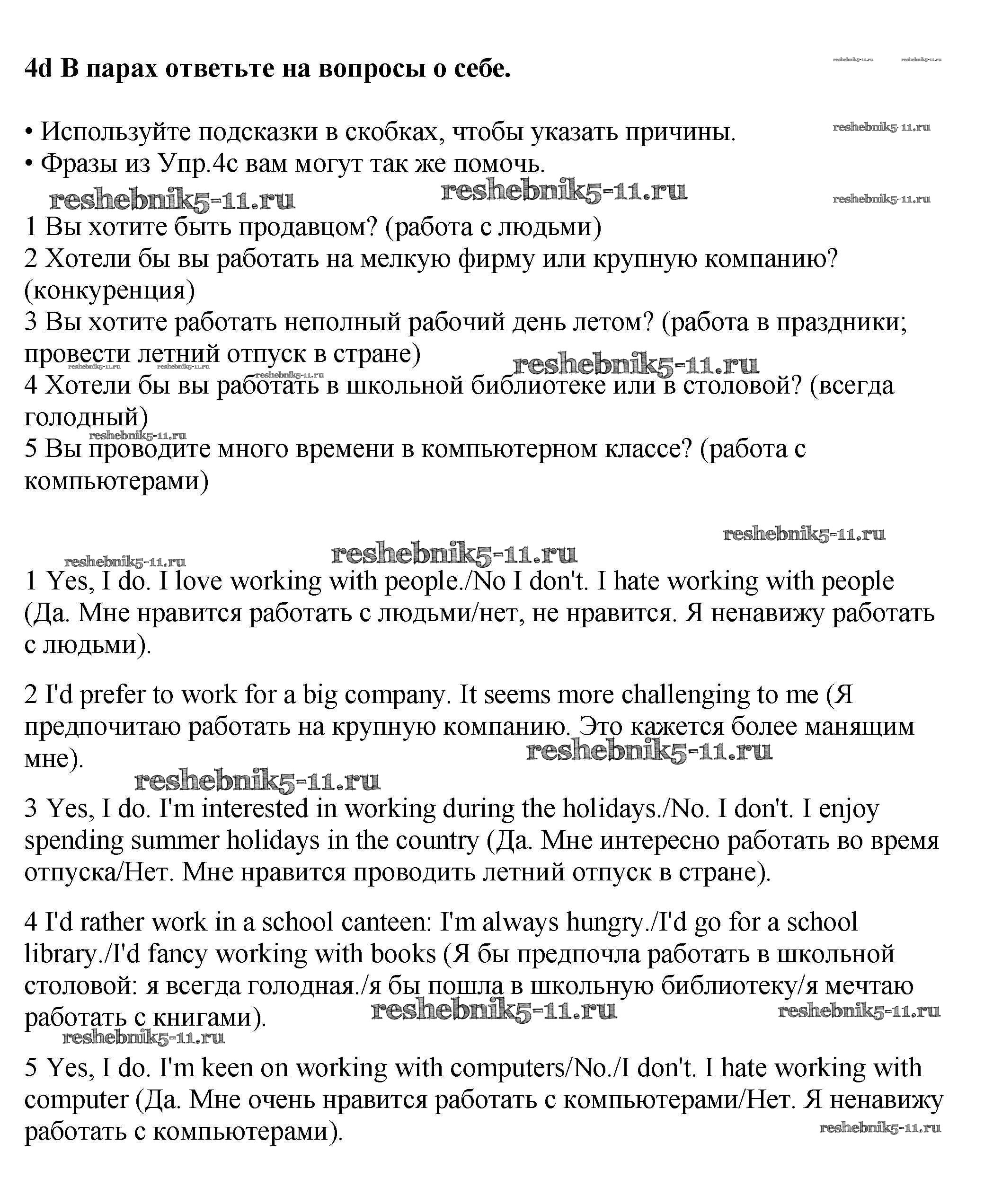 Готовая домашняя работа с ответами по Английскому языку за 9 класс Гроза, Дворецкая, Казырбаева, Клименко Учебник New Millennium Титул 2010 ФГОС - Lesson 5-6 4d