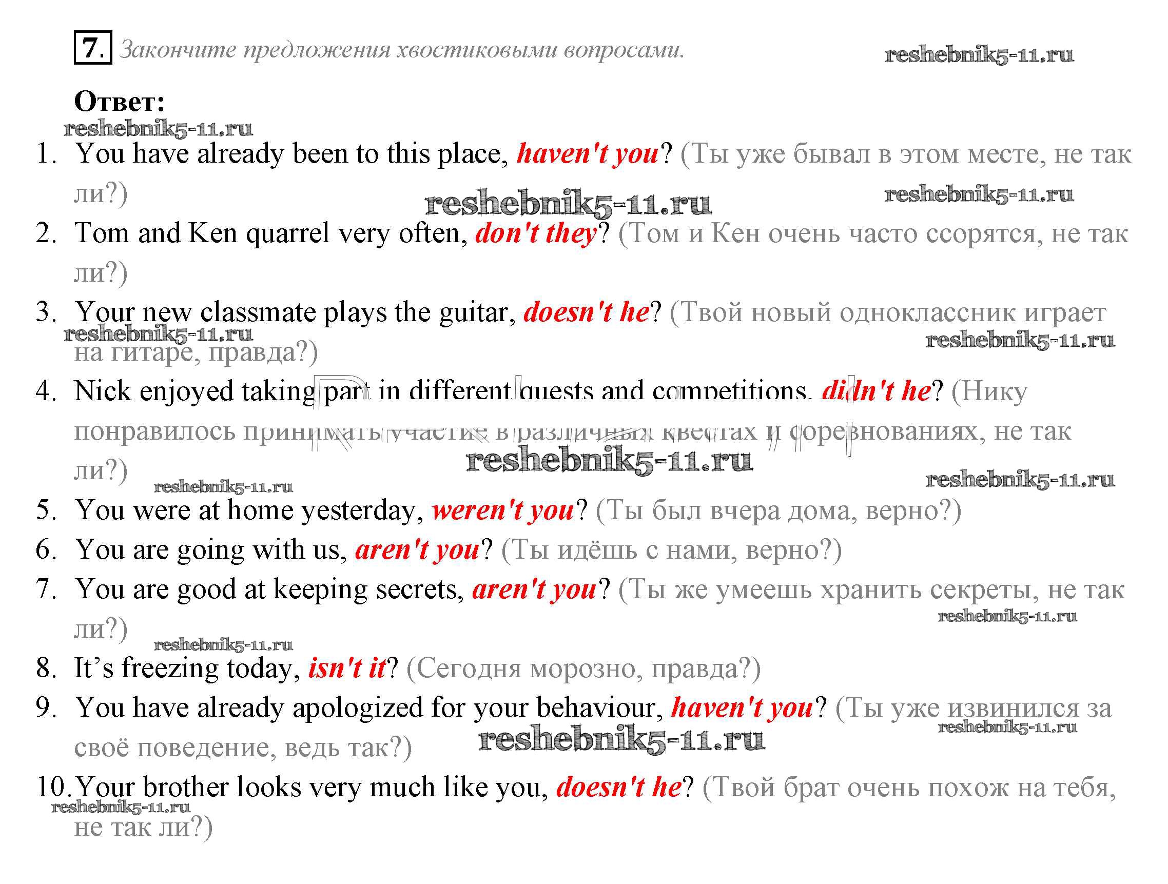 Готовая домашняя работа с ответами по Английскому языку за 9 класс Биболетова, Бабушис, Кларк, Морозова Рабочая тетрадь Enjoy English Аст/Астрель 2017 ФГОС - Section 3 7