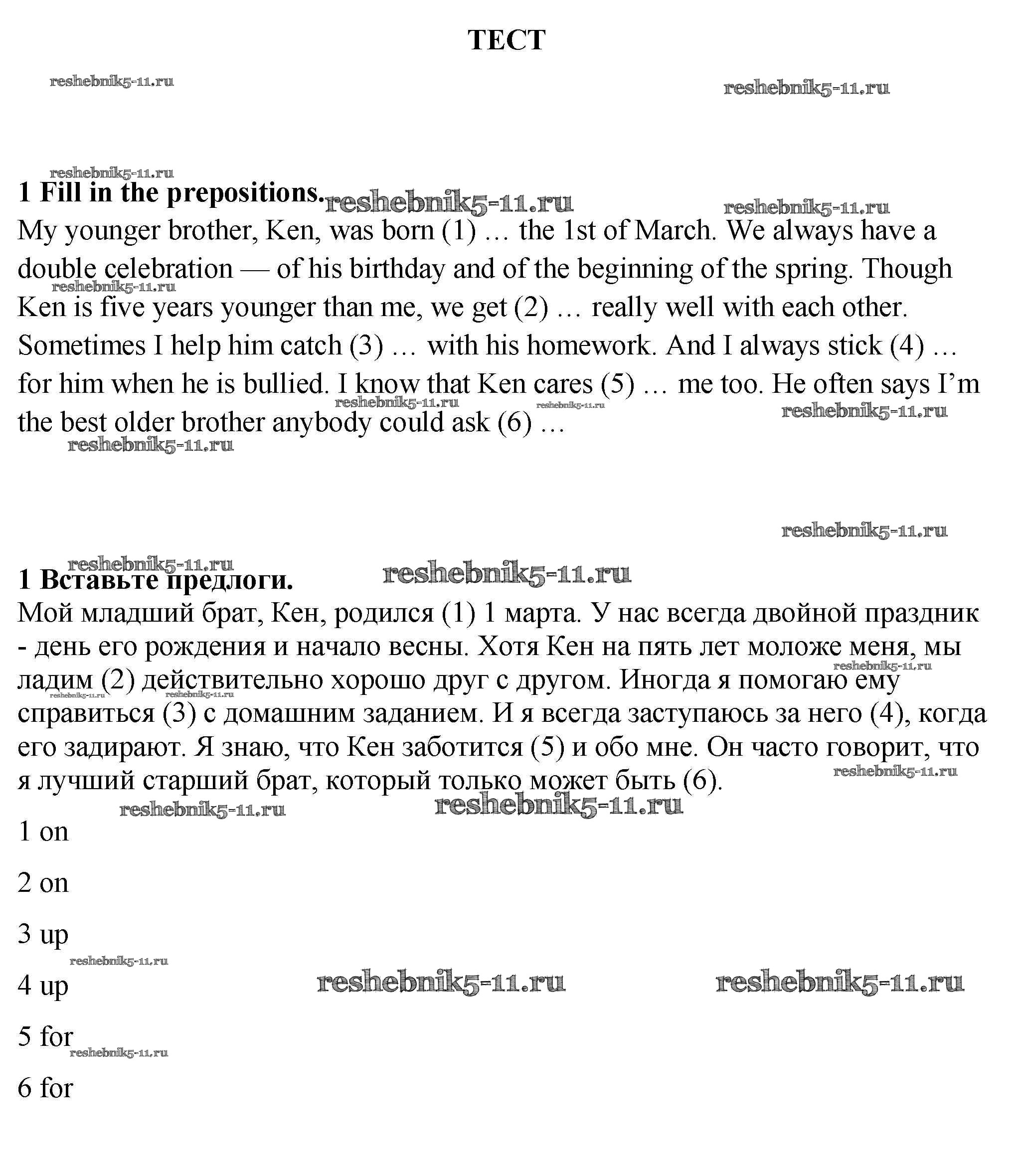 Готовая домашняя работа с ответами по Английскому языку за 9 класс Биболетова, Бабушис, Кларк, Морозова Рабочая тетрадь Enjoy English Аст/Астрель 2017 ФГОС - Test 1