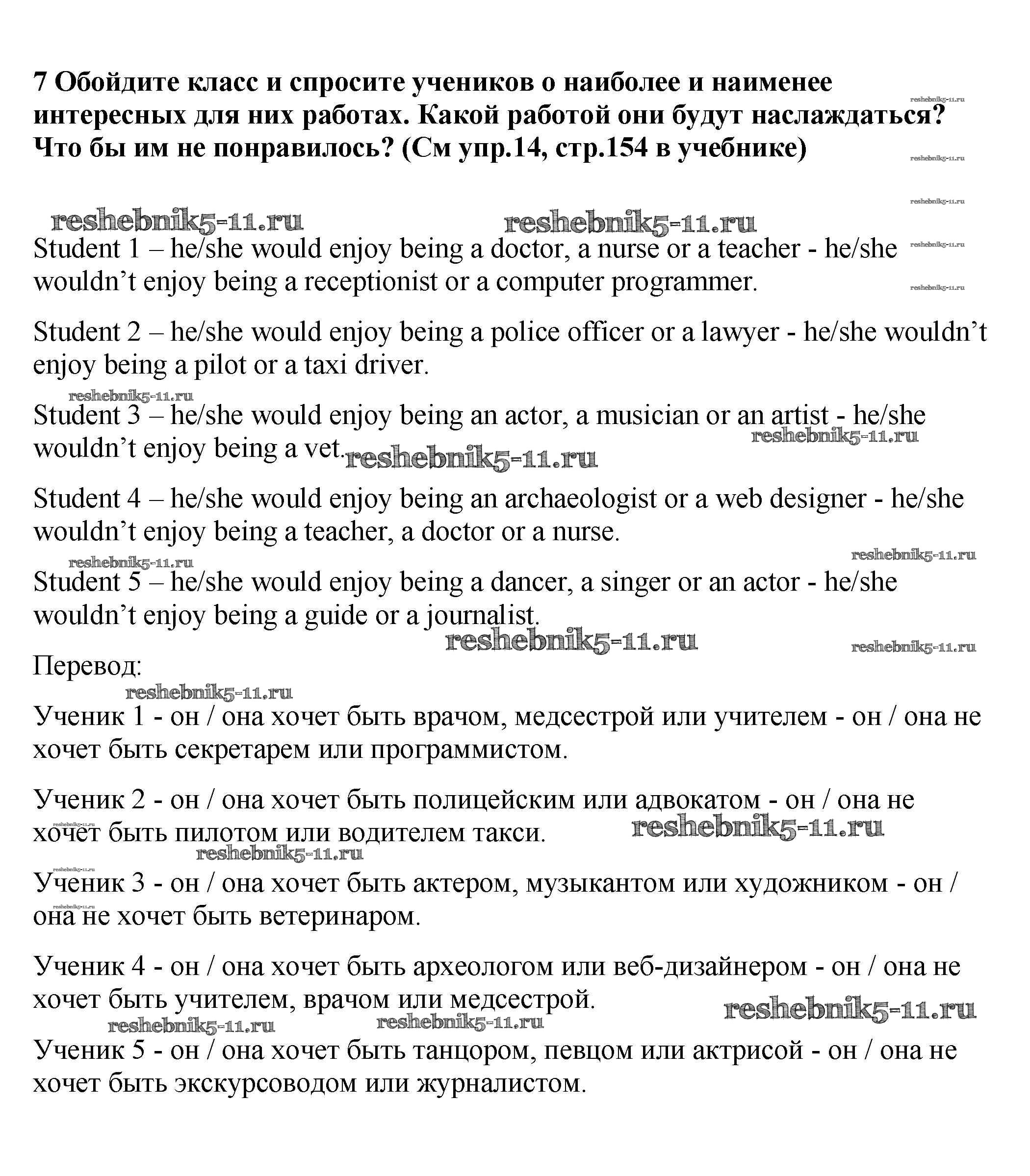 Готовая домашняя работа с ответами по Английскому языку за 9 класс Биболетова, Бабушис, Кларк, Морозова Рабочая тетрадь Enjoy English Аст/Астрель 2017 ФГОС - Section 1 7