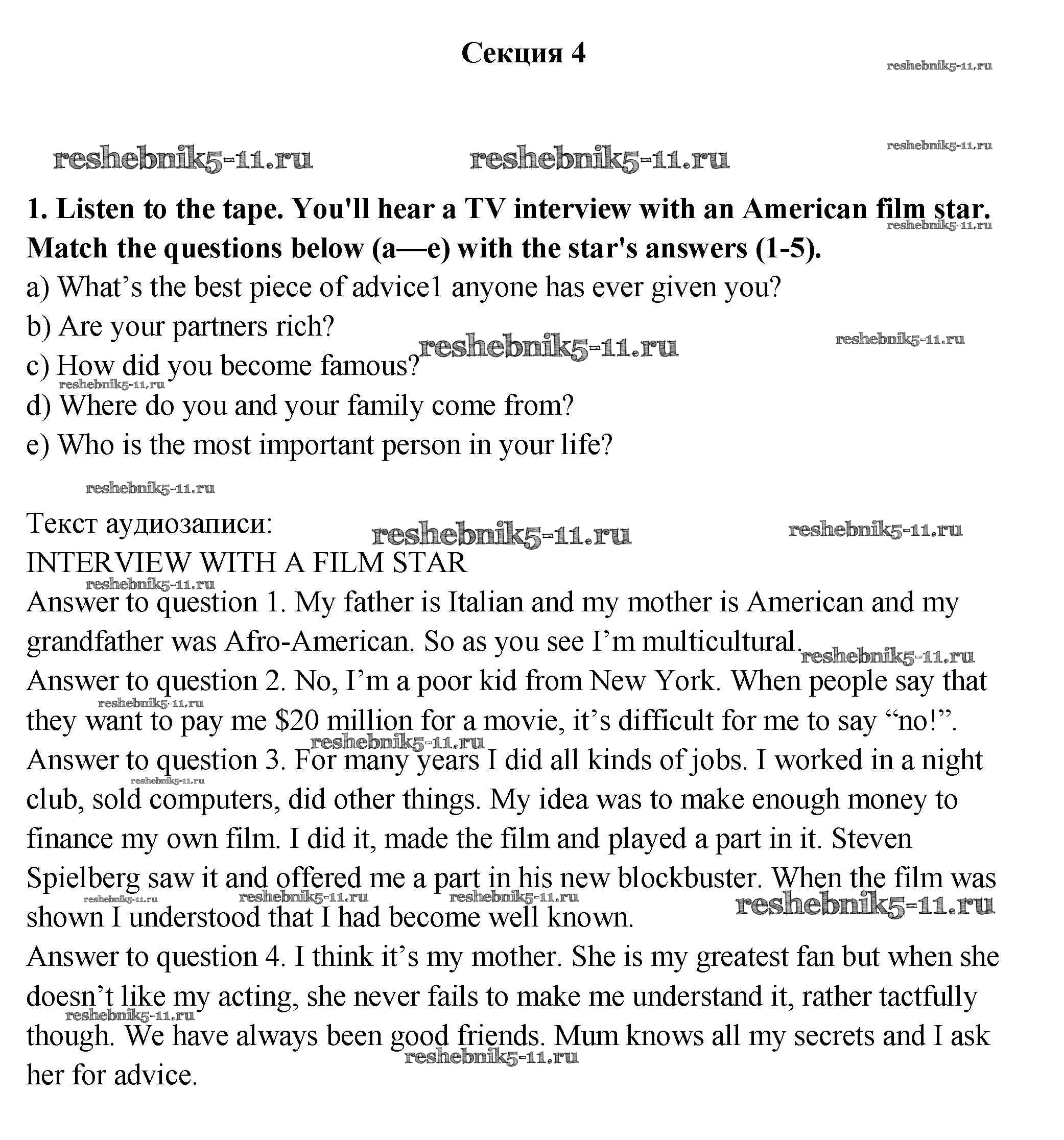 Готовая домашняя работа с ответами по Английскому языку за 9 класс Афанасьева, Михеева Учебник Новый курс Дрофа 2014 ФГОС - Секция 4 1