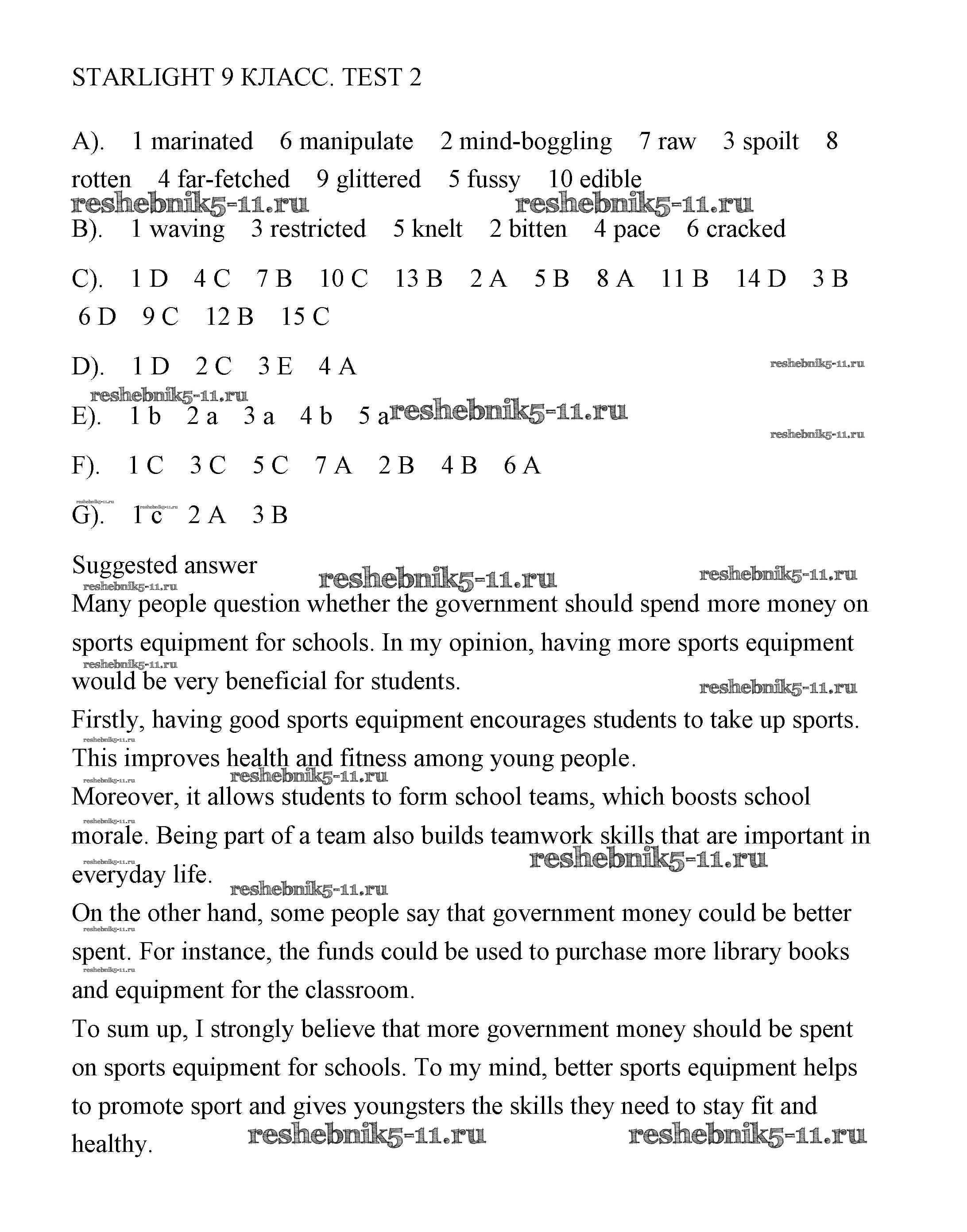 Английский язык за 9 класс Баранова Контрольные задания Starlight Углубленный уровень Просвещение тест 2