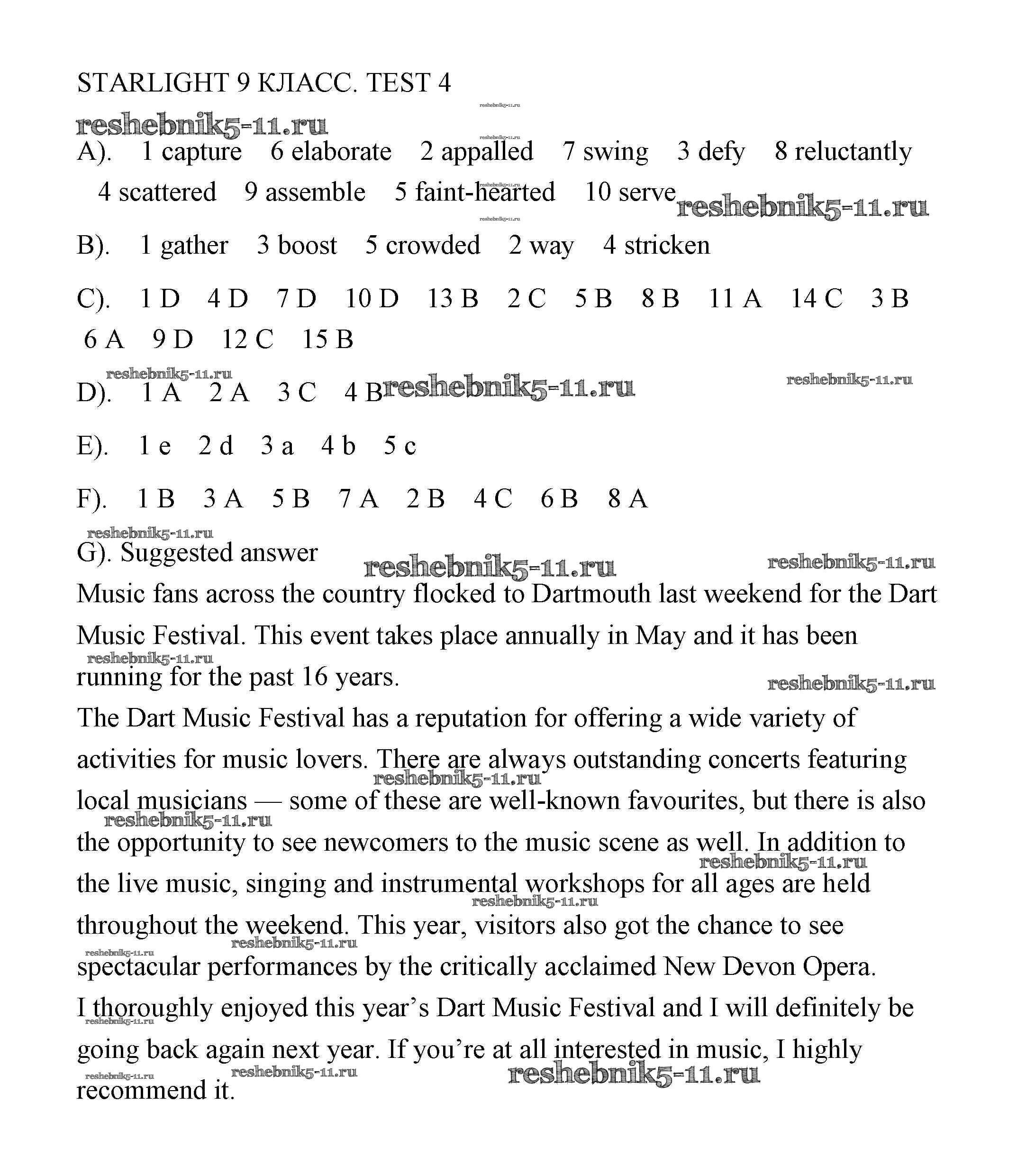 Готовая домашняя работа с ответами по Английскому языку за 9 класс Баранова, Дули, Эванс, Копылова, Мильруд Контрольные задания Starlight Углубленный уровень Просвещение 2015 ФГОС - Тесты 4