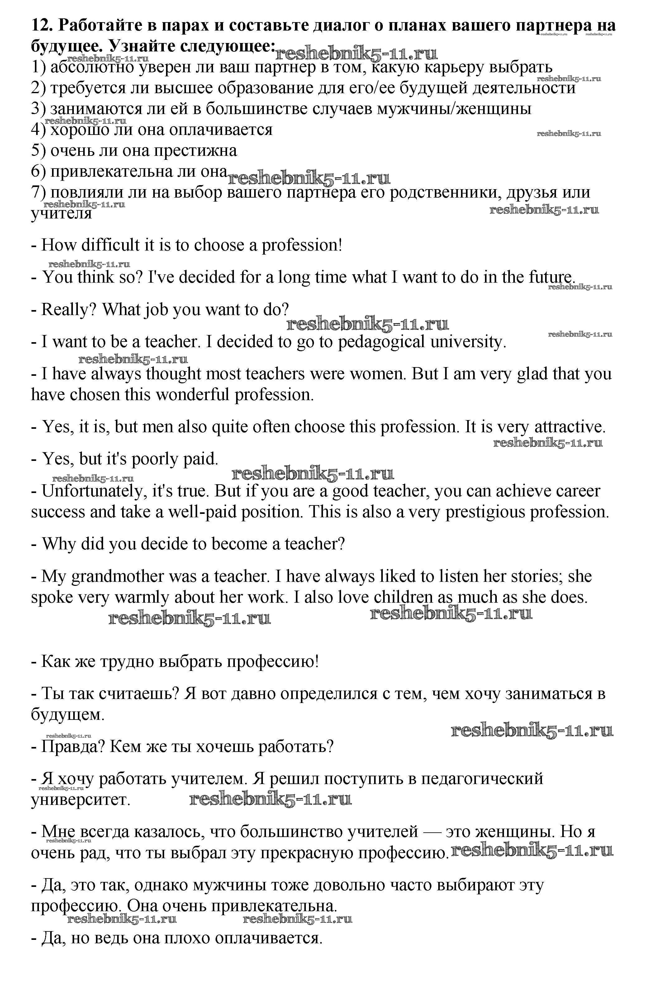 Готовая домашняя работа с ответами по Английскому языку за 9 класс Афанасьева, Михеева Рабочая тетрадь Новый курс Дрофа 2014 ФГОС - Unit 5. Your Future Life and Career 12