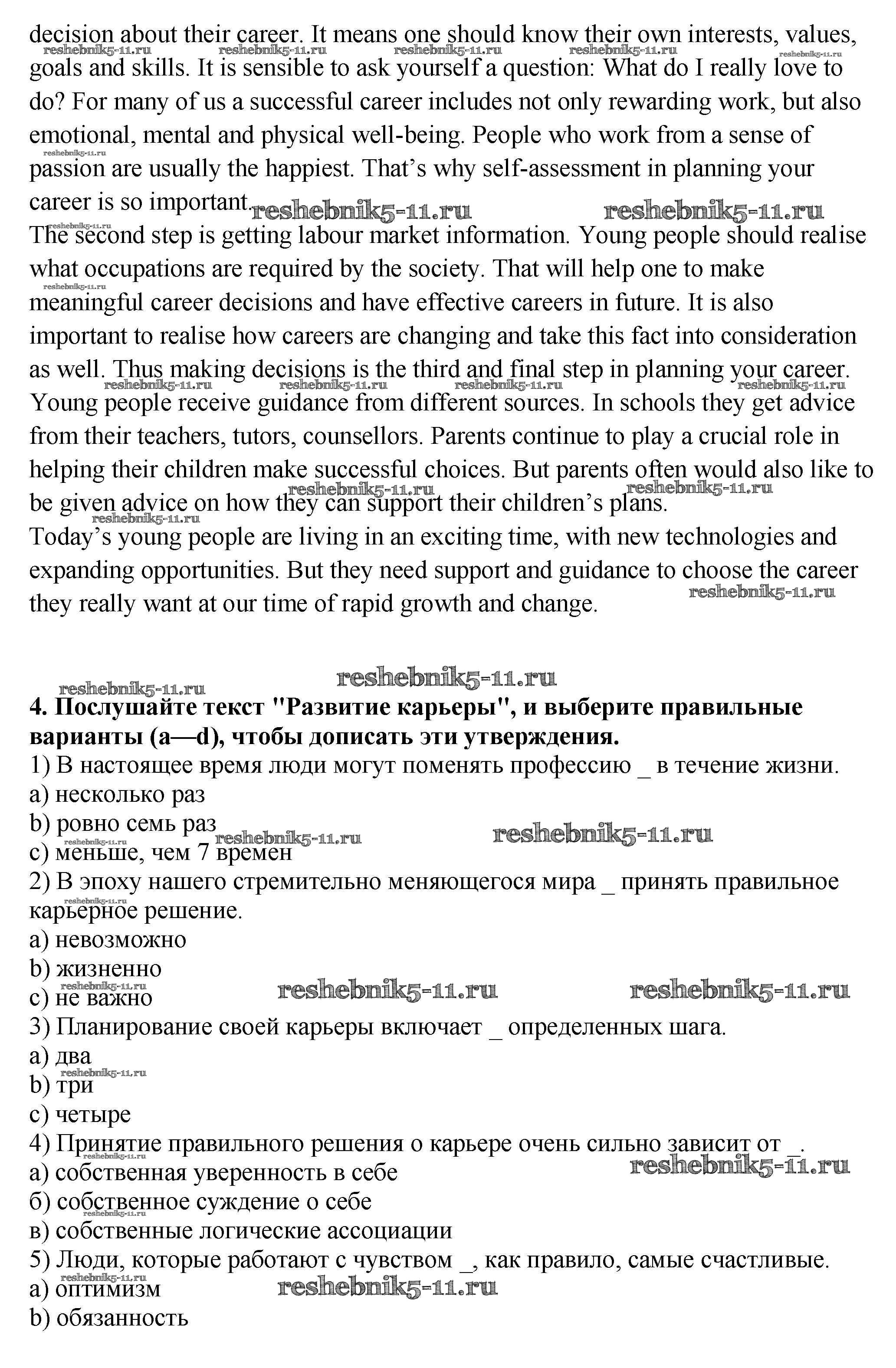 Готовая домашняя работа с ответами по Английскому языку за 9 класс Афанасьева, Михеева Рабочая тетрадь Новый курс Дрофа 2014 ФГОС - Unit 5. Your Future Life and Career 4