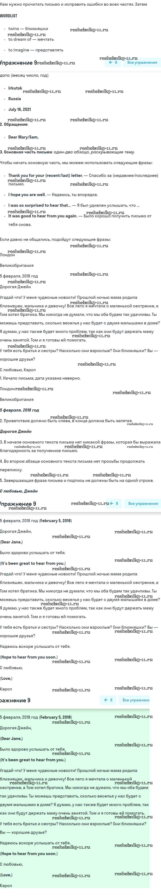 Готовая домашняя работа с ответами по Английскому языку за 9 класс Афанасьева, Михеева, Баранова Учебник Rainbow Часть 1, 2 Дрофа 2017 ФГОС - Step 8 9