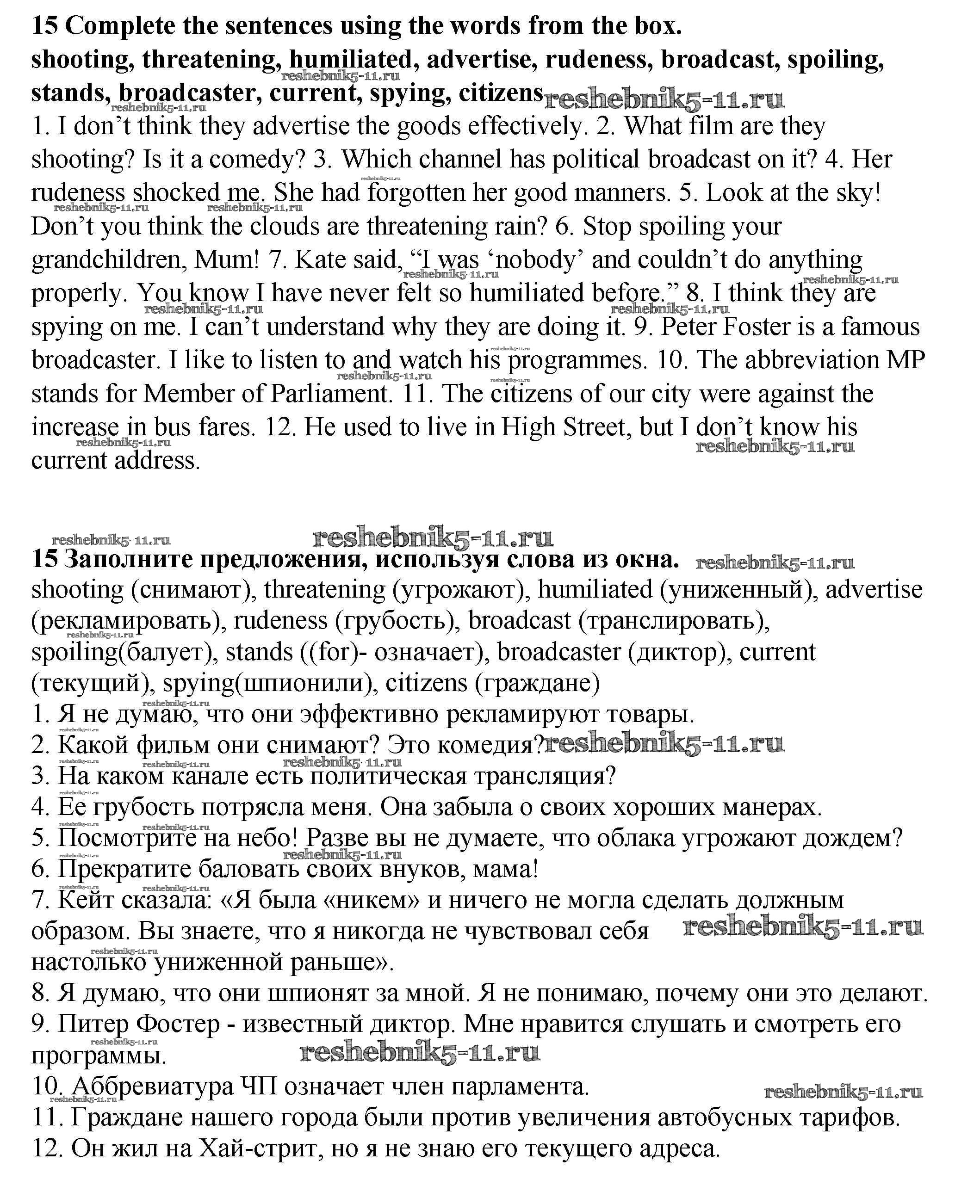 Готовая домашняя работа с ответами по Английскому языку за 9 класс Афанасьева, Михеева, Баранова Рабочая тетрадь Rainbow Дрофа 2016 ФГОС - Unit 1. Mass Media: Radio, Television, the Internet. Pages 4-29 15
