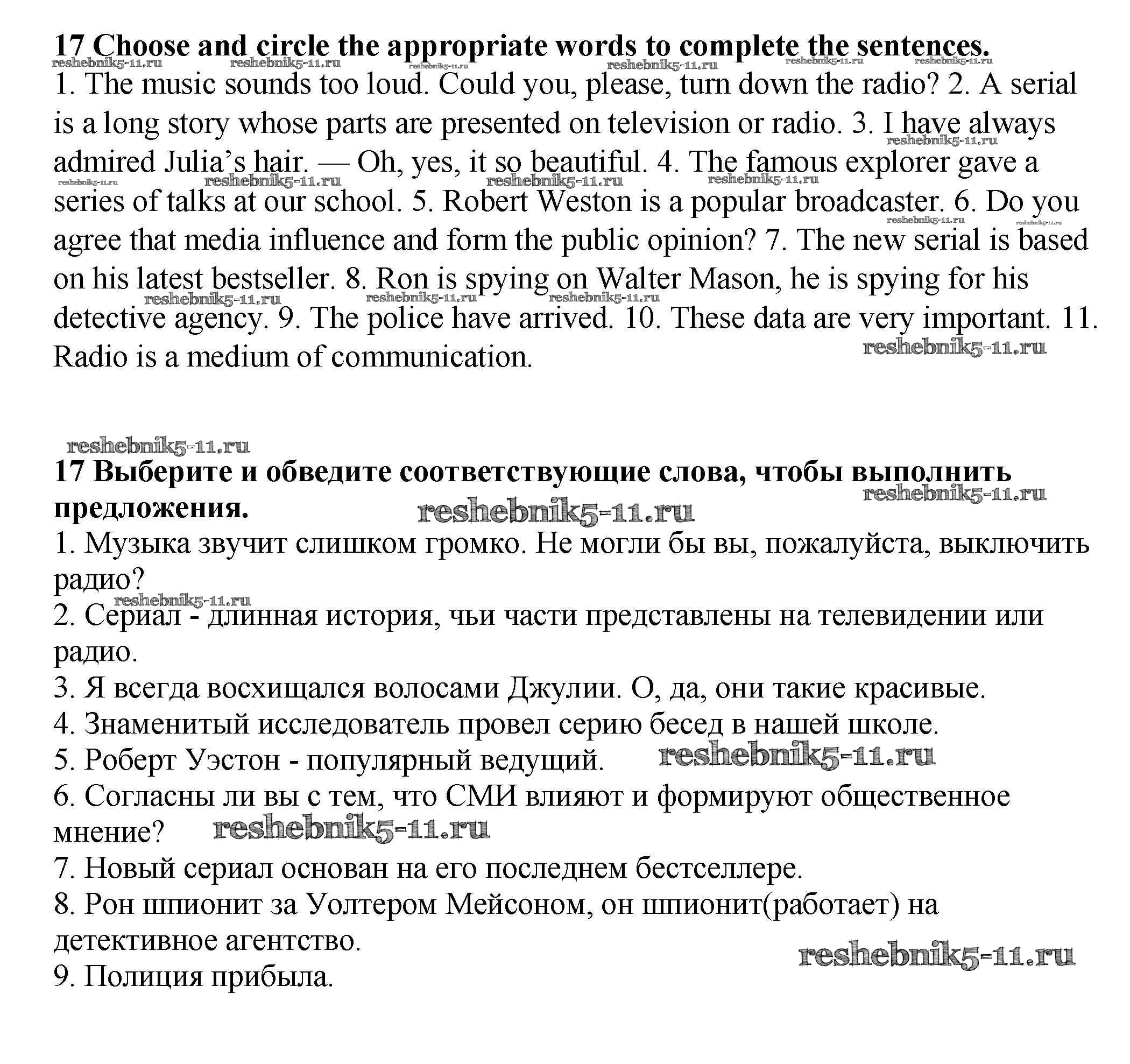 Готовая домашняя работа с ответами по Английскому языку за 9 класс Афанасьева, Михеева, Баранова Рабочая тетрадь Rainbow Дрофа 2016 ФГОС - Unit 1. Mass Media: Radio, Television, the Internet. Pages 4-29 17
