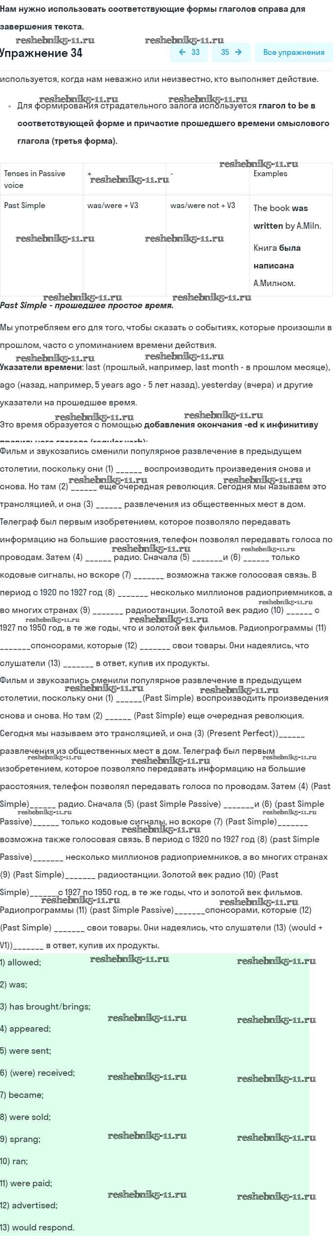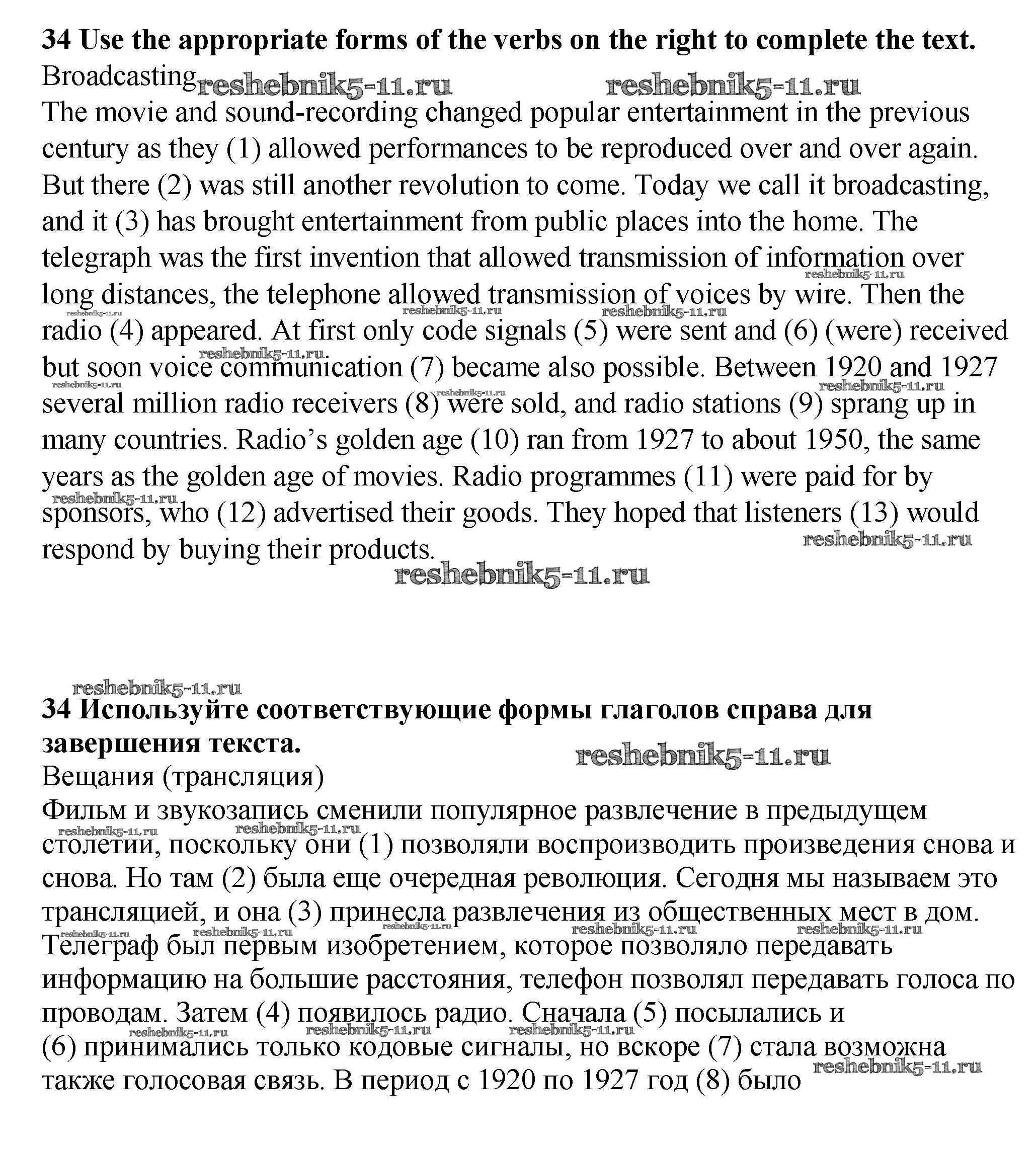 Готовая домашняя работа с ответами по Английскому языку за 9 класс Афанасьева, Михеева, Баранова Рабочая тетрадь Rainbow Дрофа 2016 ФГОС - Unit 1. Mass Media: Radio, Television, the Internet. Pages 4-29 34