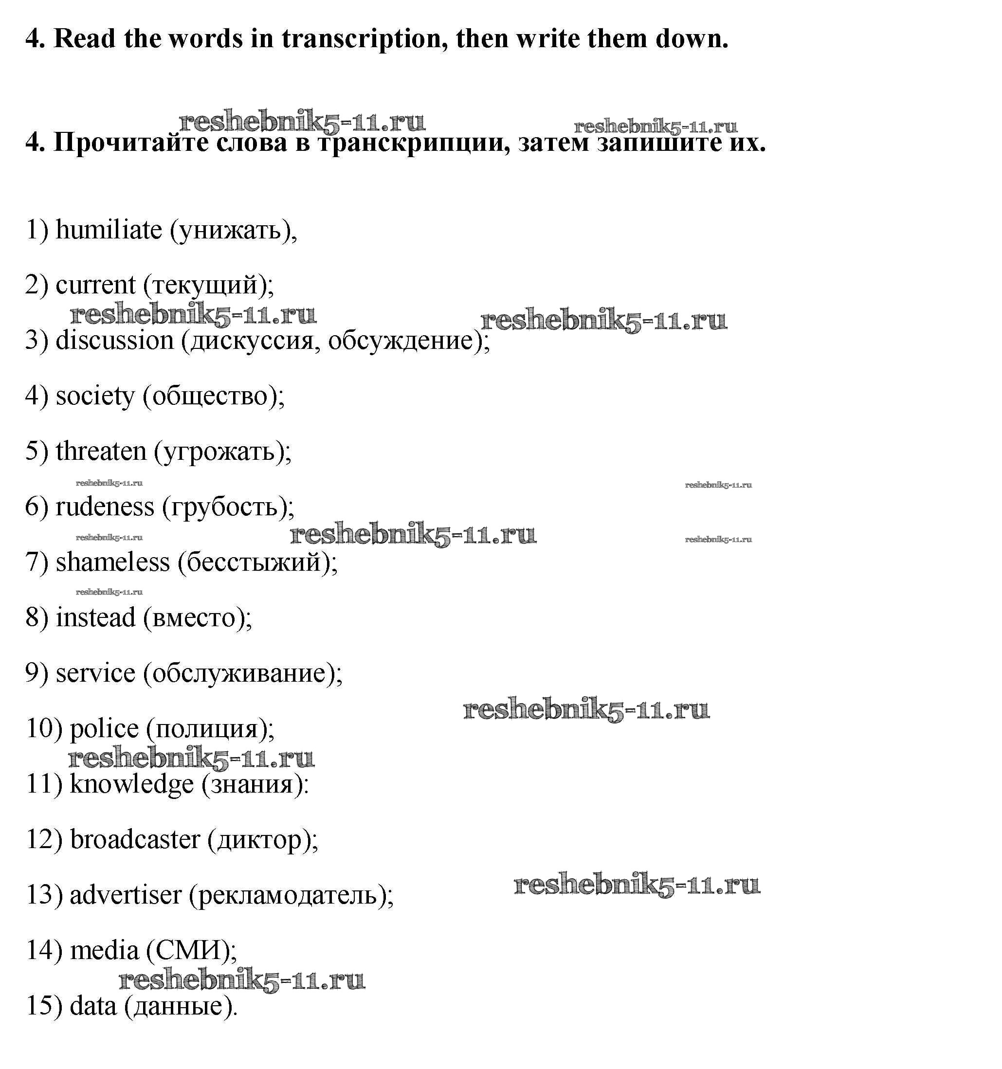 Готовая домашняя работа с ответами по Английскому языку за 9 класс Афанасьева, Михеева, Баранова Рабочая тетрадь Rainbow Дрофа 2016 ФГОС - Unit 1. Mass Media: Radio, Television, the Internet. Pages 4-29 4