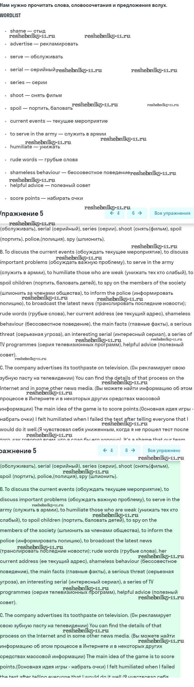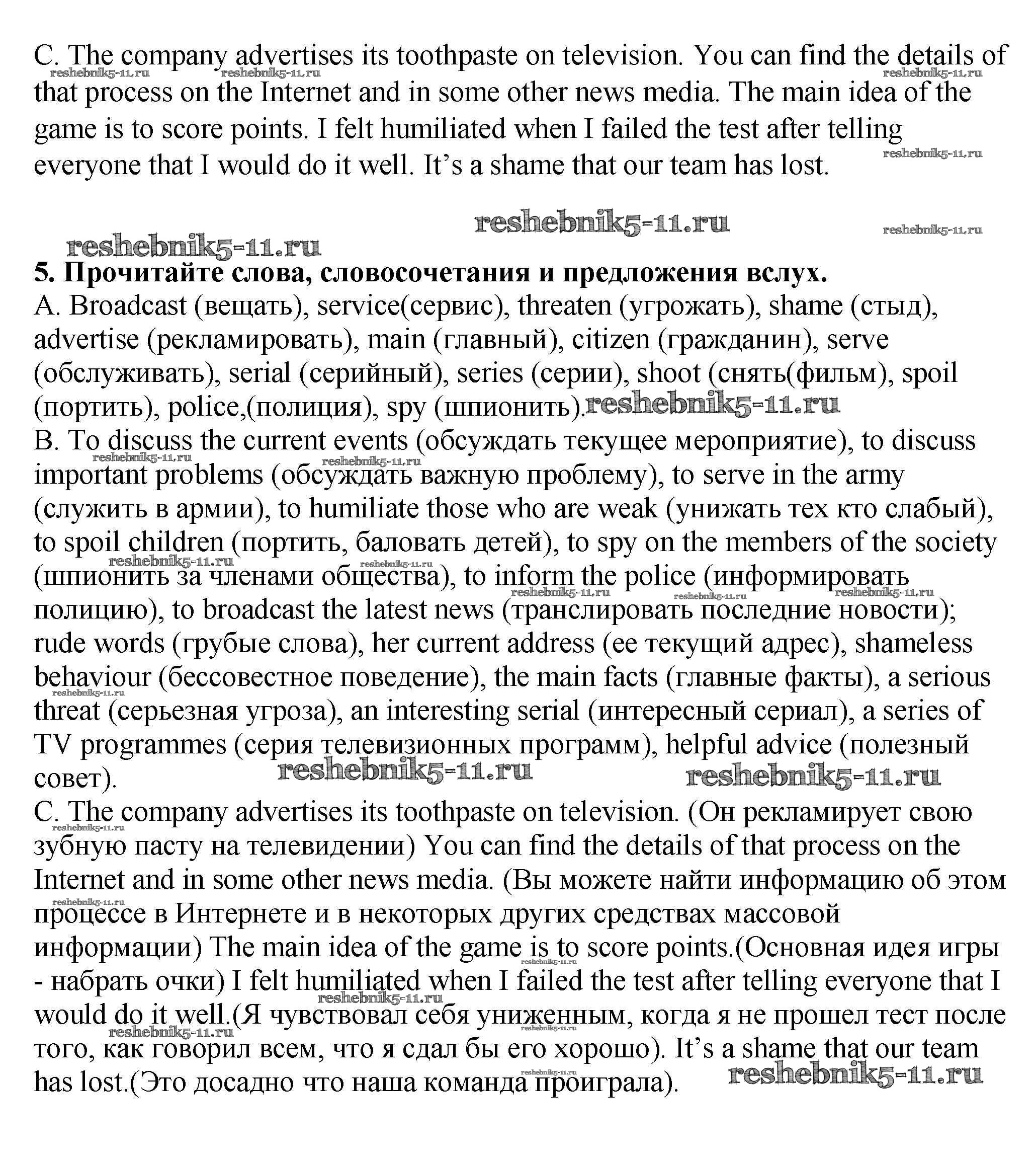 Готовая домашняя работа с ответами по Английскому языку за 9 класс Афанасьева, Михеева, Баранова Рабочая тетрадь Rainbow Дрофа 2016 ФГОС - Unit 1. Mass Media: Radio, Television, the Internet. Pages 4-29 5