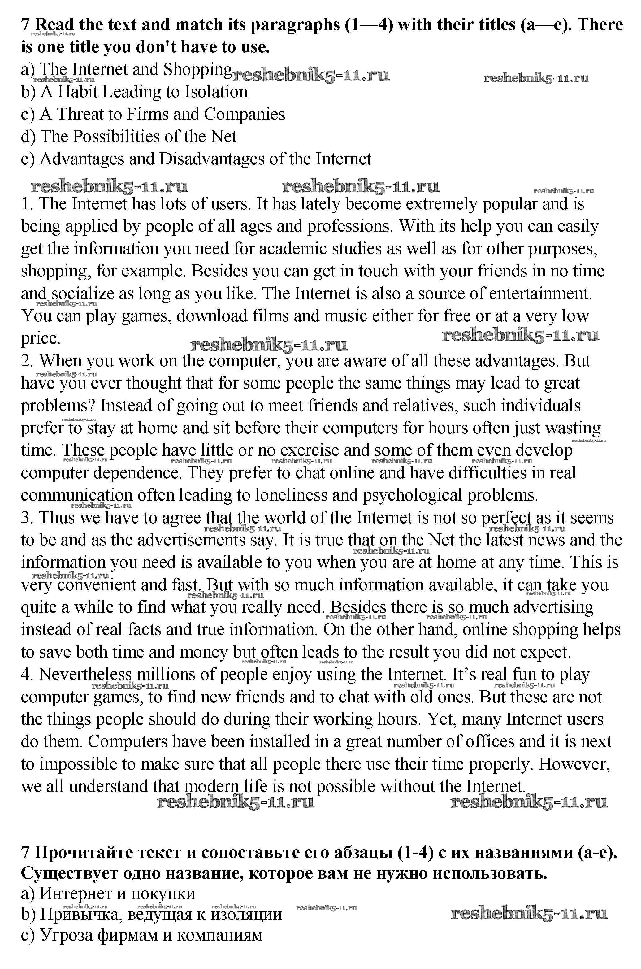 Готовая домашняя работа с ответами по Английскому языку за 9 класс Афанасьева, Михеева, Баранова Рабочая тетрадь Rainbow Дрофа 2016 ФГОС - Unit 1. Mass Media: Radio, Television, the Internet. Pages 4-29 7