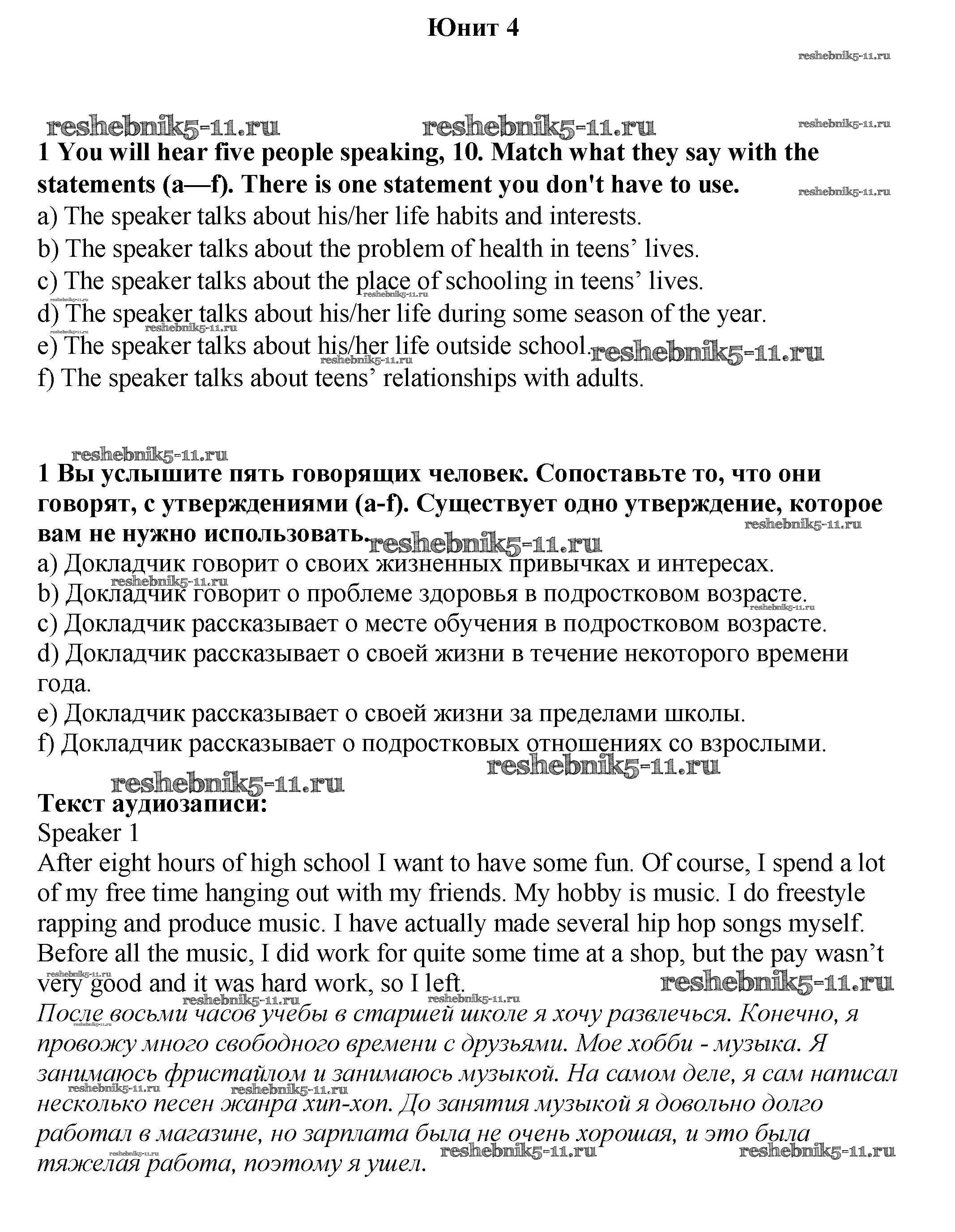Готовая домашняя работа с ответами по Английскому языку за 9 класс Афанасьева, Михеева, Баранова Рабочая тетрадь Rainbow Дрофа 2016 ФГОС - Unit 4. Being a Teenager. Pages 82-110 1