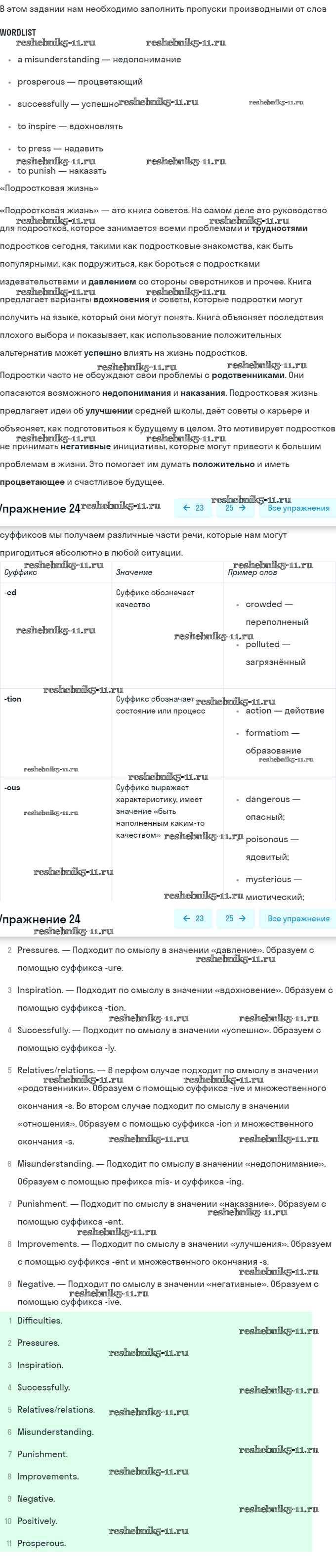 Готовая домашняя работа с ответами по Английскому языку за 9 класс Афанасьева, Михеева, Баранова Рабочая тетрадь Rainbow Дрофа 2016 ФГОС - Unit 4. Being a Teenager. Pages 82-110 24