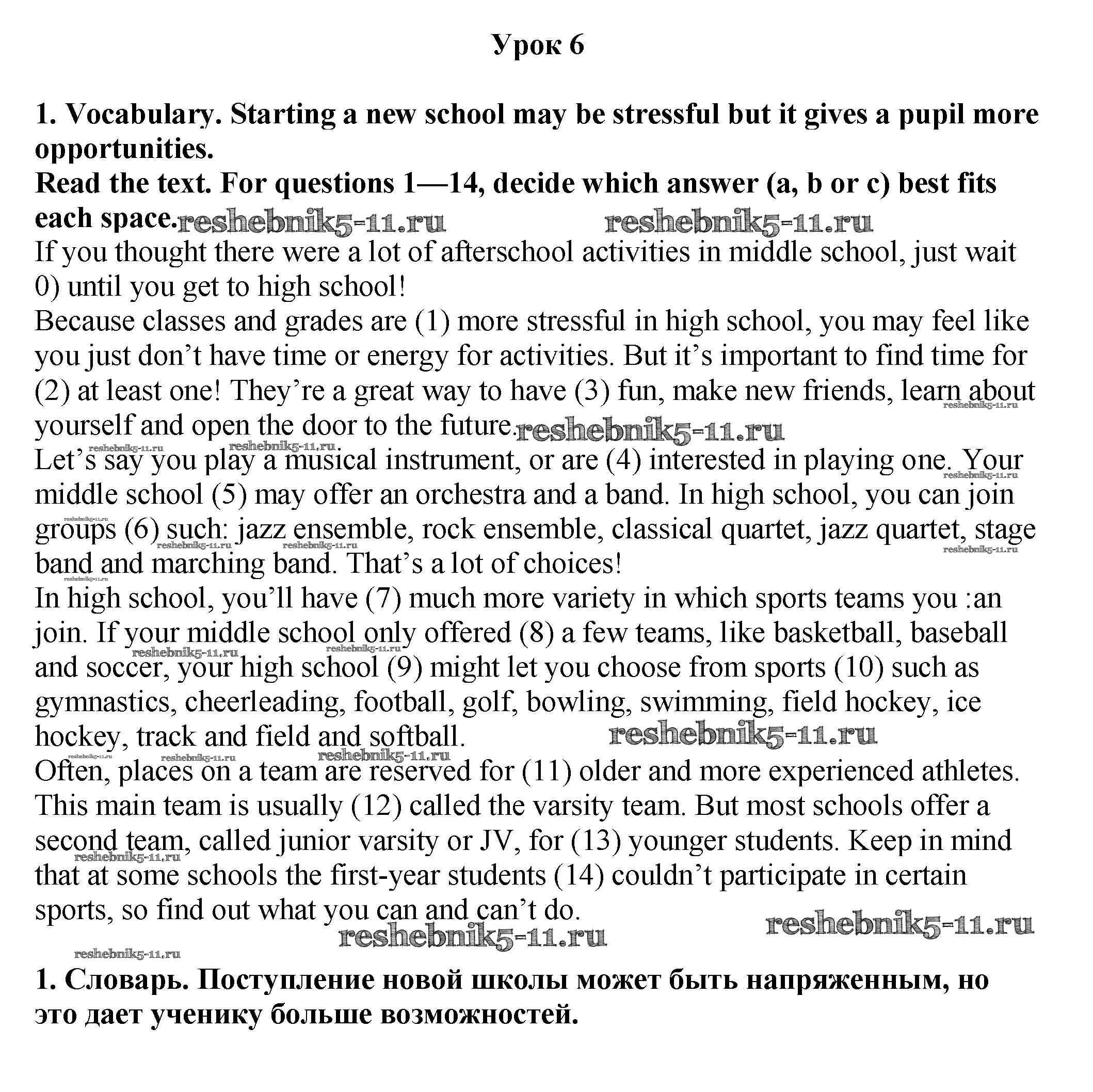 Готовая домашняя работа с ответами по Английскому языку за 9 класс Кузовлев, Перегудова, Лапа, Дуванова Рабочая тетрадь УМК Просвещение 2016 ФГОС - Урок 6 1