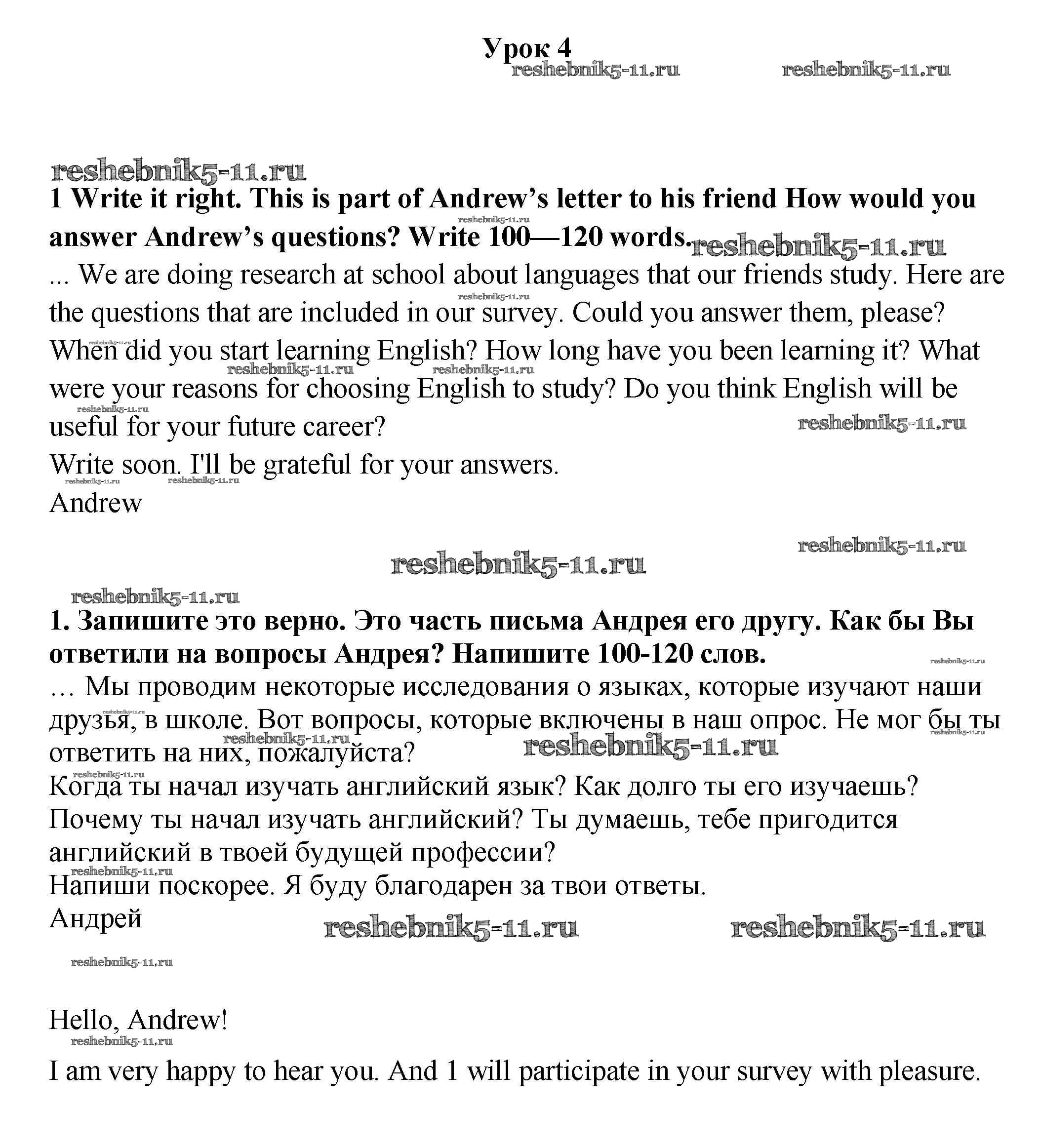 Готовая домашняя работа с ответами по Английскому языку за 9 класс Кузовлев, Перегудова, Лапа, Дуванова Рабочая тетрадь УМК Просвещение 2016 ФГОС - Урок 4 1