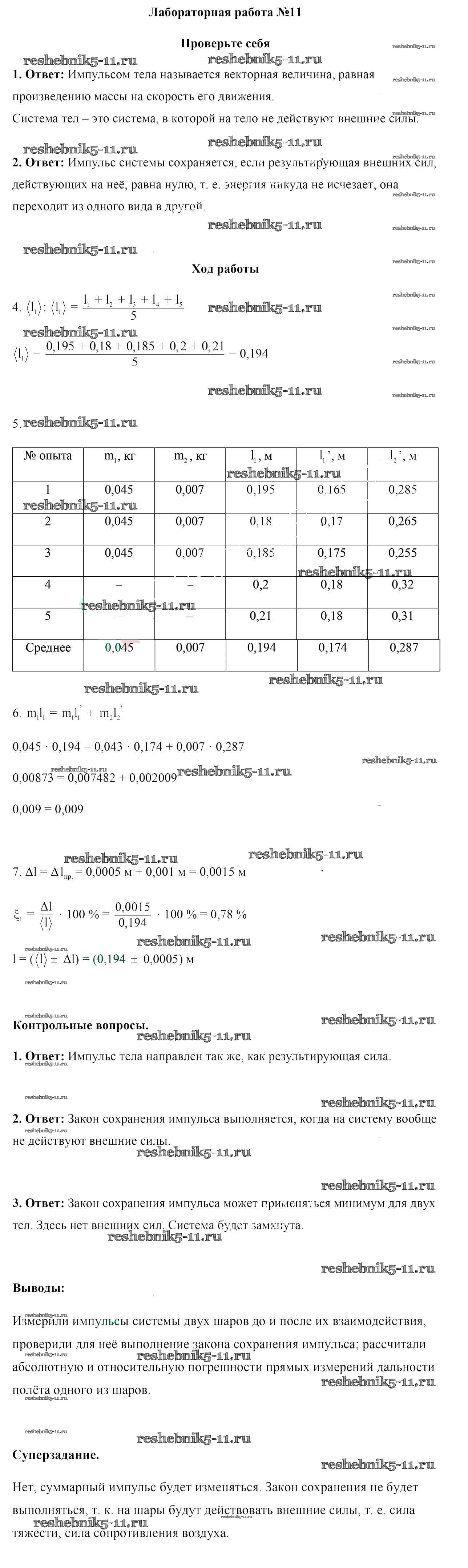 Готовая домашняя работа с ответами по Физике за 9 класс Исаченкова, Жолнеревич, Медведь Лабораторные работы Аверсэв 2016 - Лабораторные работы 11