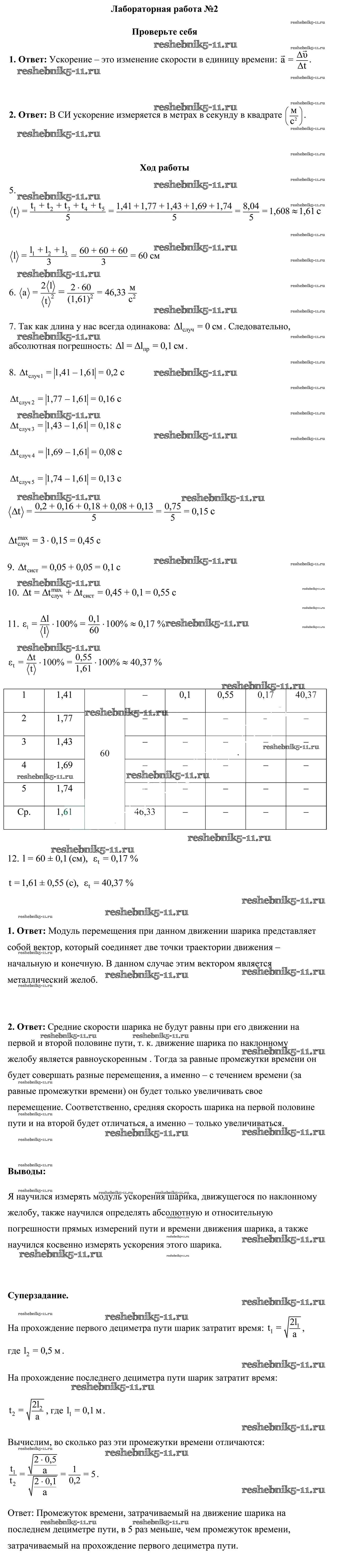 Готовая домашняя работа с ответами по Физике за 9 класс Исаченкова, Жолнеревич, Медведь Лабораторные работы Аверсэв 2016 - Лабораторные работы 2