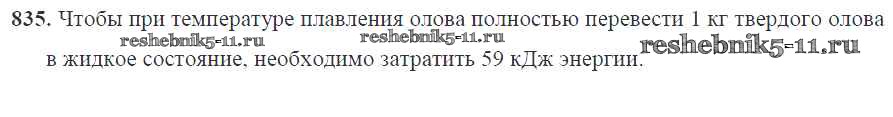 Готовая домашняя работа с ответами по Физике за 7, 8, 9 класс Перышкин, Лонцова Сборник задач УМК Экзамен 2016 ФГОС - Тепловые явления 835