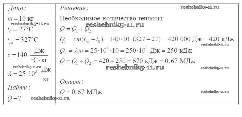 Готовая домашняя работа с ответами по Физике за 7, 8, 9 класс Перышкин, Лонцова Сборник задач УМК Экзамен 2016 ФГОС - Тепловые явления 847