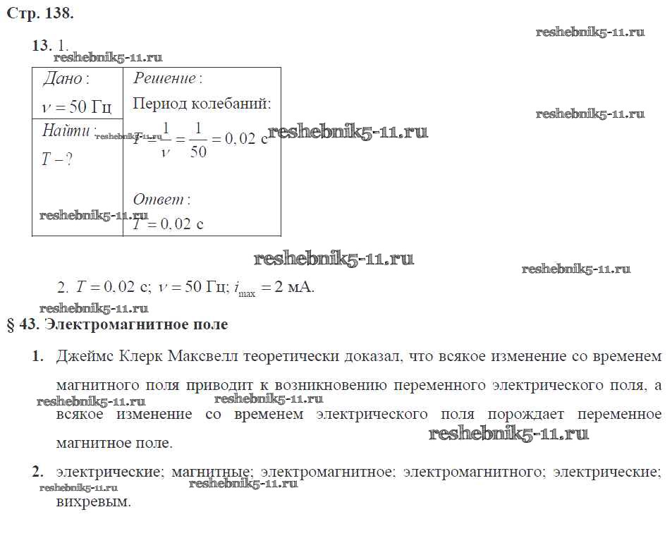 Готовая домашняя работа с ответами по Физике за 9 класс Касьянов, Дмитриева Рабочая тетрадь УМК Дрофа 2017 ФГОС - Страницы 138