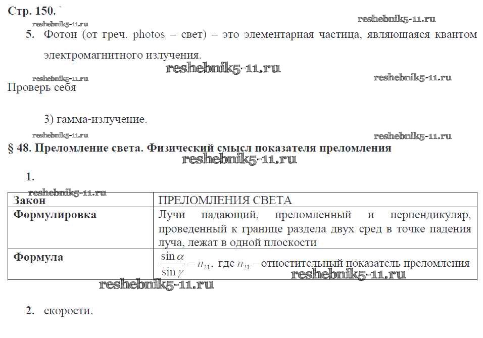Готовая домашняя работа с ответами по Физике за 9 класс Касьянов, Дмитриева Рабочая тетрадь УМК Дрофа 2017 ФГОС - Страницы 150