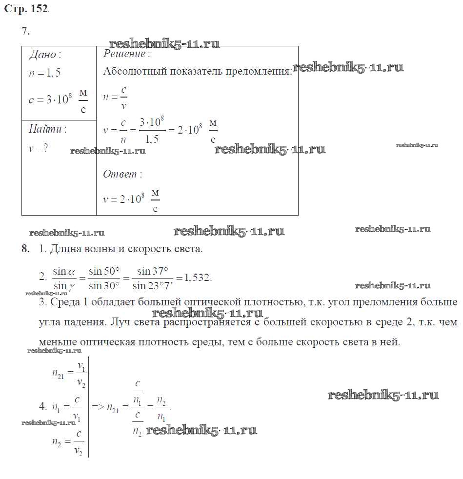Готовая домашняя работа с ответами по Физике за 9 класс Касьянов, Дмитриева Рабочая тетрадь УМК Дрофа 2017 ФГОС - Страницы 152