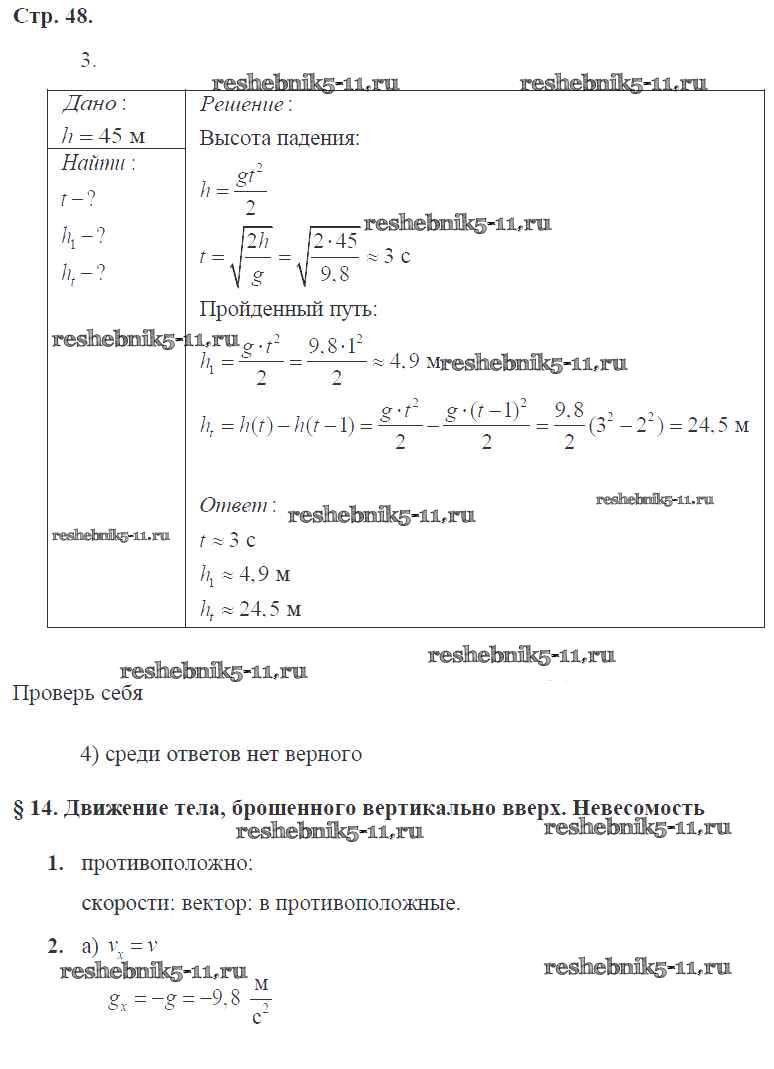 Готовая домашняя работа с ответами по Физике за 9 класс Касьянов, Дмитриева Рабочая тетрадь УМК Дрофа 2017 ФГОС - Страницы 48