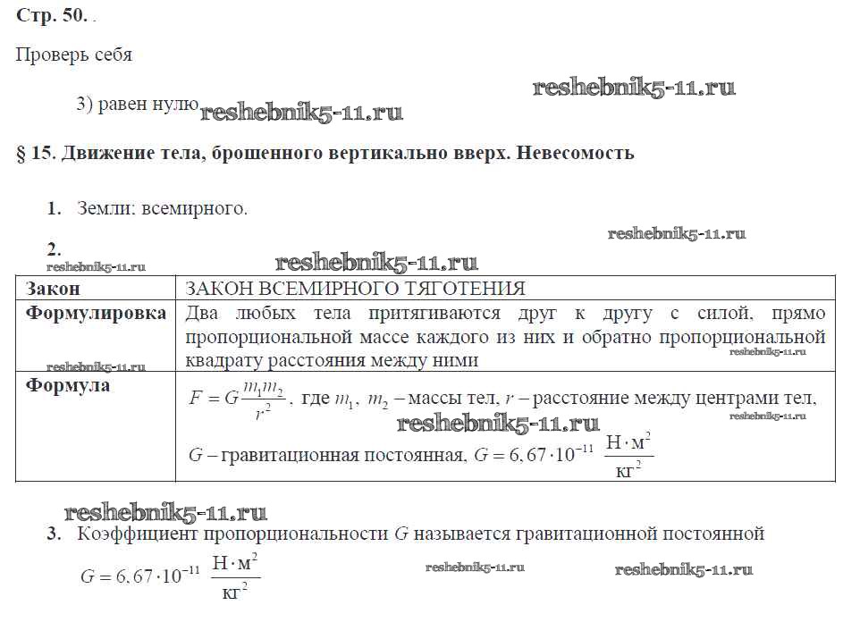 Готовая домашняя работа с ответами по Физике за 9 класс Касьянов, Дмитриева Рабочая тетрадь УМК Дрофа 2017 ФГОС - Страницы 50