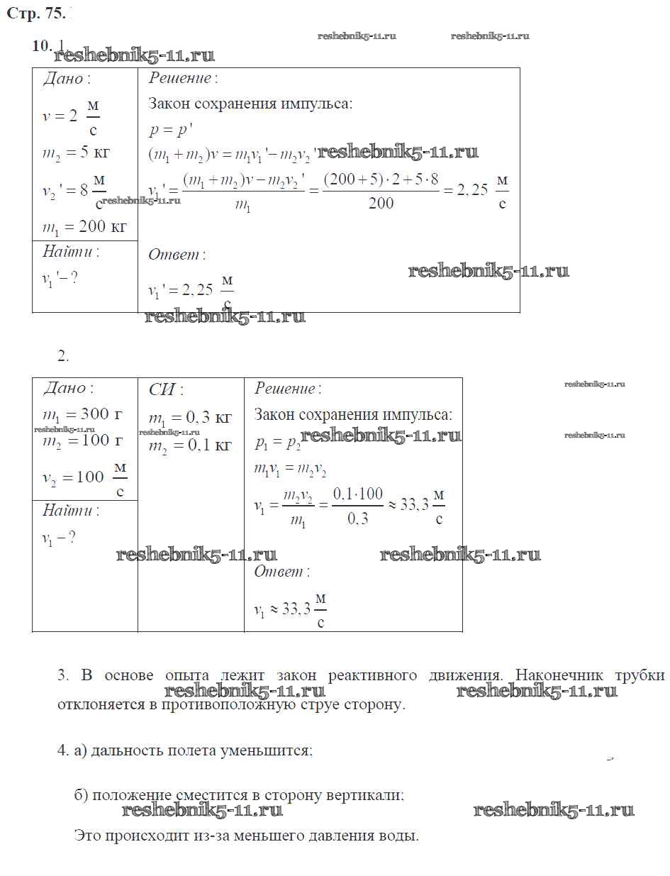 Готовая домашняя работа с ответами по Физике за 9 класс Касьянов, Дмитриева Рабочая тетрадь УМК Дрофа 2017 ФГОС - Страницы 75