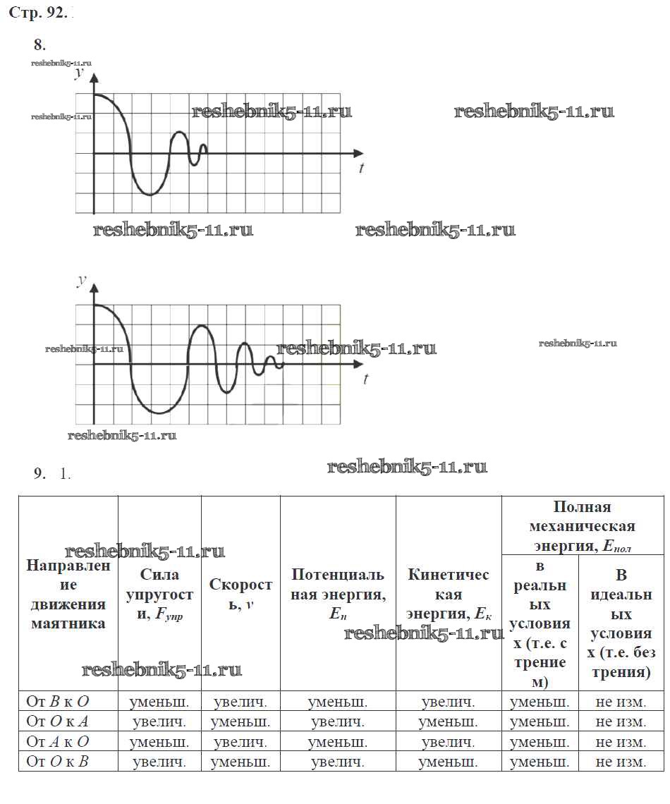 Готовая домашняя работа с ответами по Физике за 9 класс Касьянов, Дмитриева Рабочая тетрадь УМК Дрофа 2017 ФГОС - Страницы 92