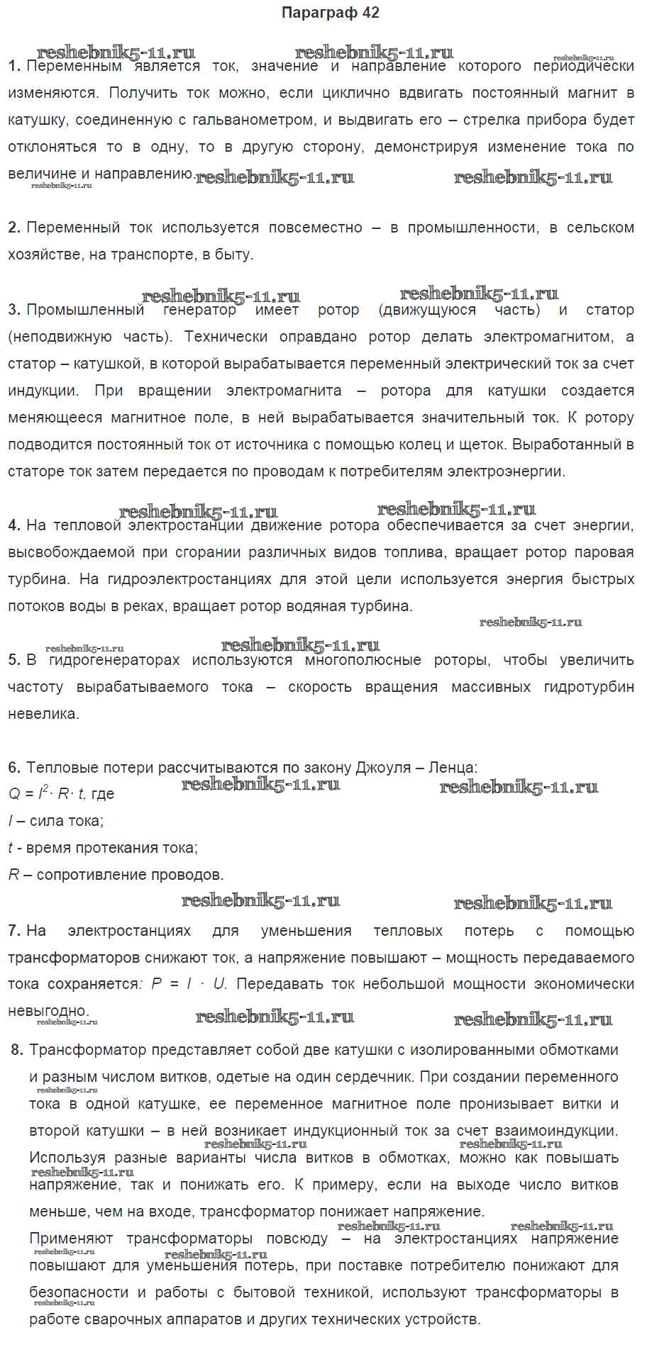 Готовая домашняя работа с ответами по Физике за 9 класс Перышкин, Гутник Учебник Дрофа 2014 ФГОС - Параграфы 42