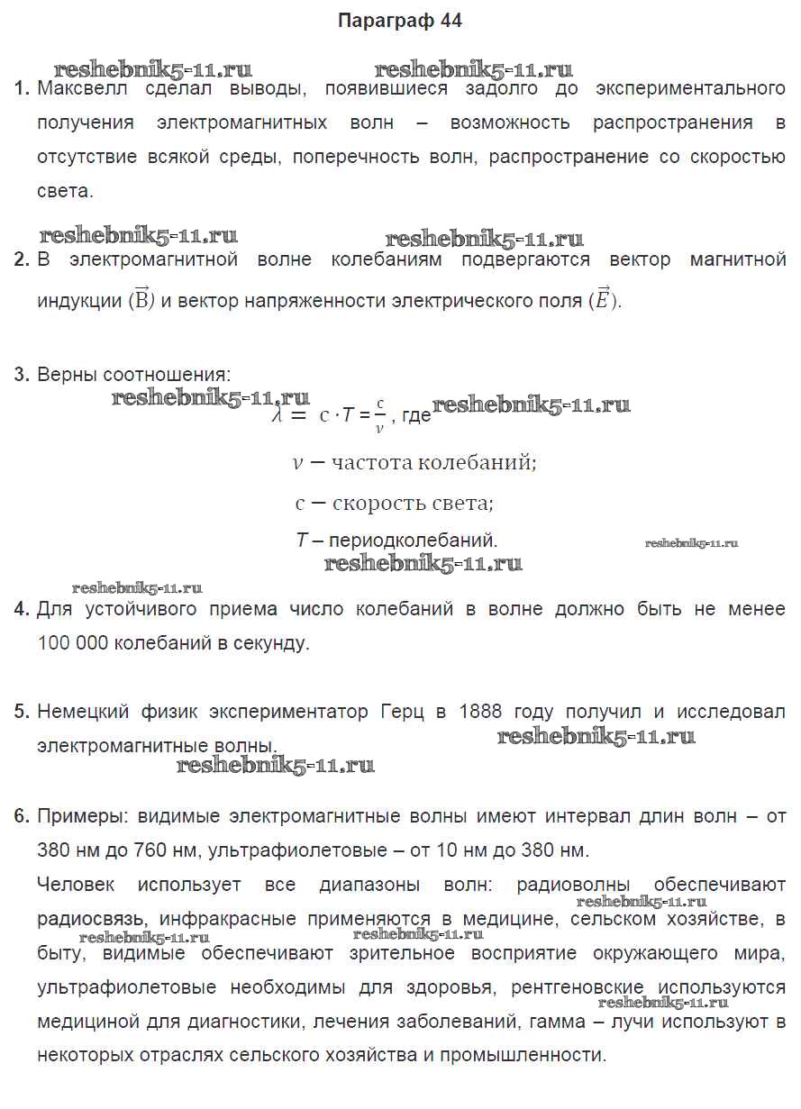 Готовая домашняя работа с ответами по Физике за 9 класс Перышкин, Гутник Учебник Дрофа 2014 ФГОС - Параграфы 44