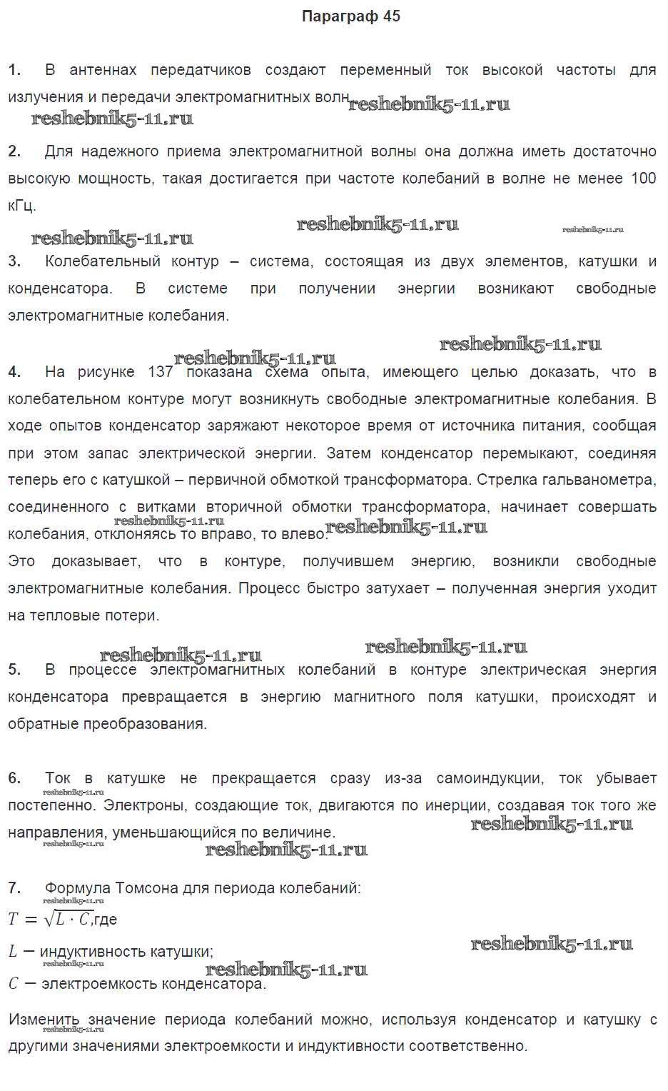 Готовая домашняя работа с ответами по Физике за 9 класс Перышкин, Гутник Учебник Дрофа 2014 ФГОС - Параграфы 45