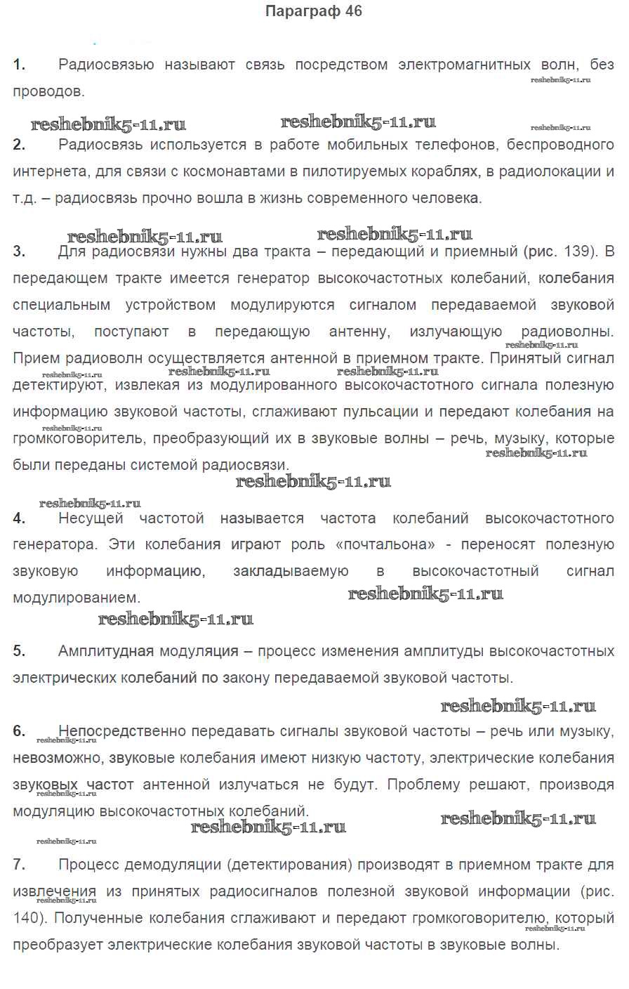 Готовая домашняя работа с ответами по Физике за 9 класс Перышкин, Гутник Учебник Дрофа 2014 ФГОС - Параграфы 46