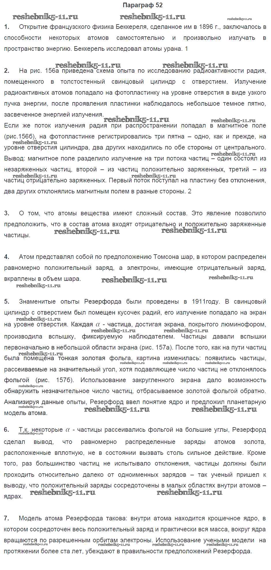 Готовая домашняя работа с ответами по Физике за 9 класс Перышкин, Гутник Учебник Дрофа 2014 ФГОС - Параграфы 52