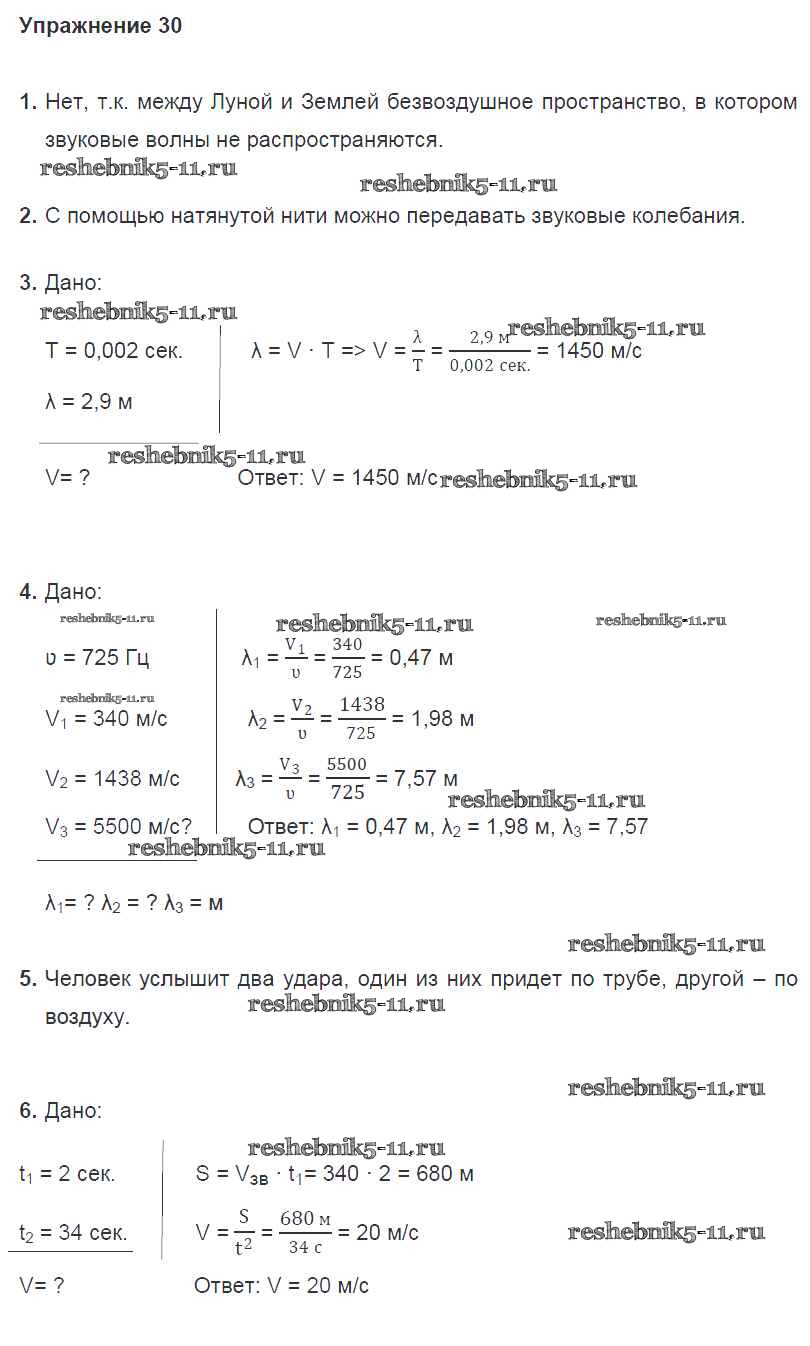 Готовая домашняя работа с ответами по Физике за 9 класс Перышкин, Гутник Учебник Дрофа 2014 ФГОС - Упражнения 30