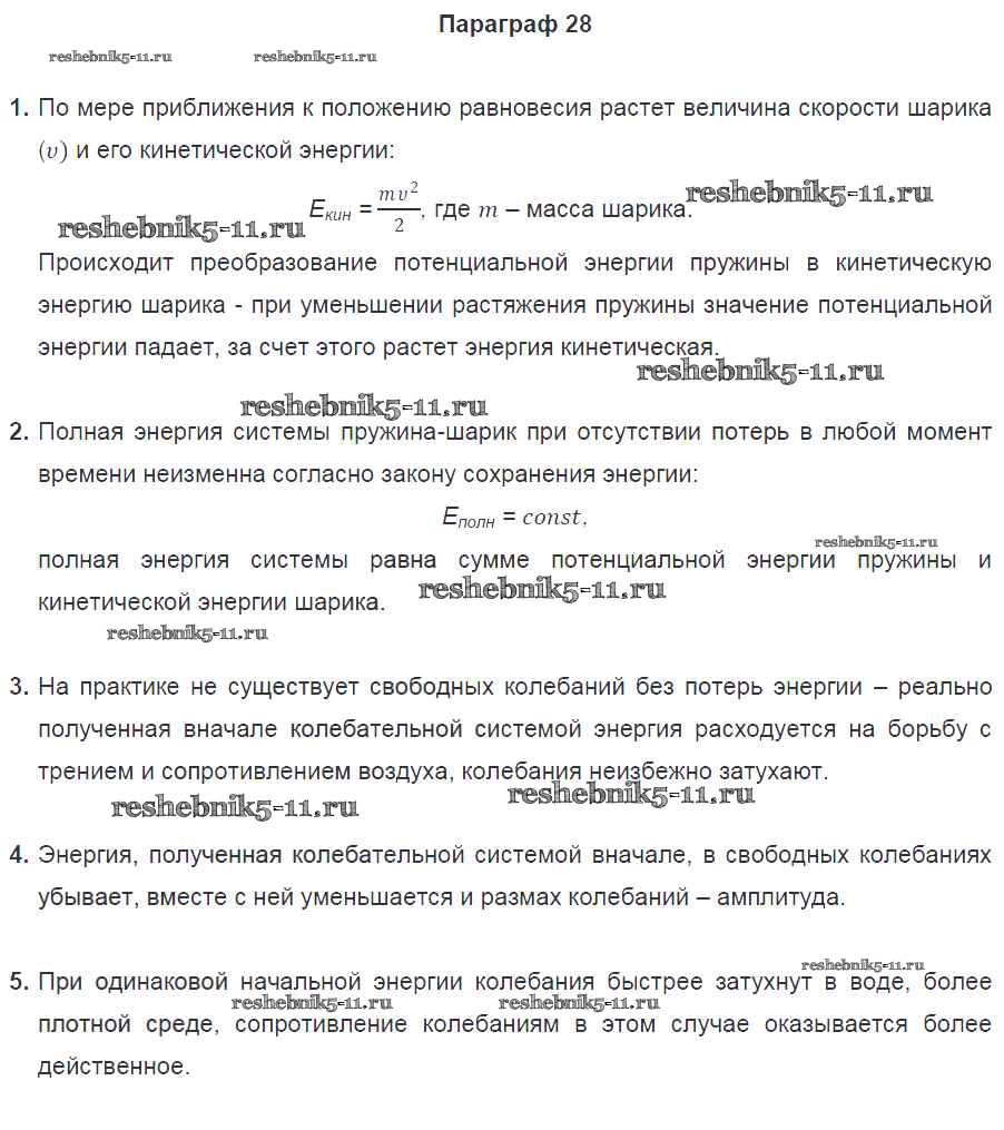 Готовая домашняя работа с ответами по Физике за 9 класс Перышкин, Гутник Учебник Дрофа 2014 ФГОС - Параграфы 28