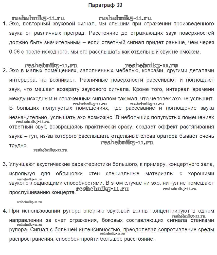 Готовая домашняя работа с ответами по Физике за 9 класс Перышкин, Гутник Учебник Дрофа 2014 ФГОС - Параграфы 39