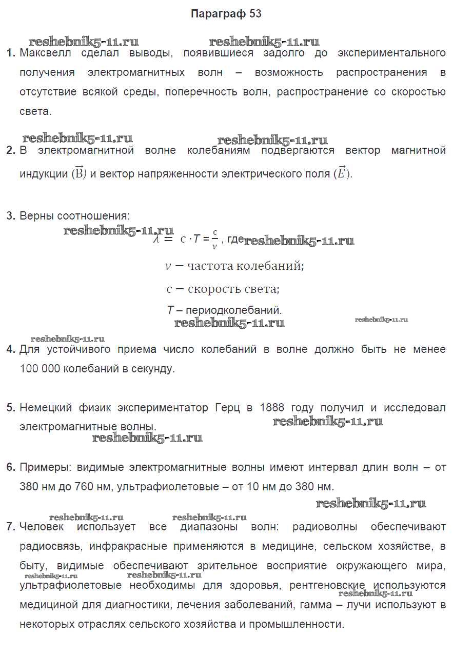Готовая домашняя работа с ответами по Физике за 9 класс Перышкин, Гутник Учебник Дрофа 2014 ФГОС - Параграфы 53