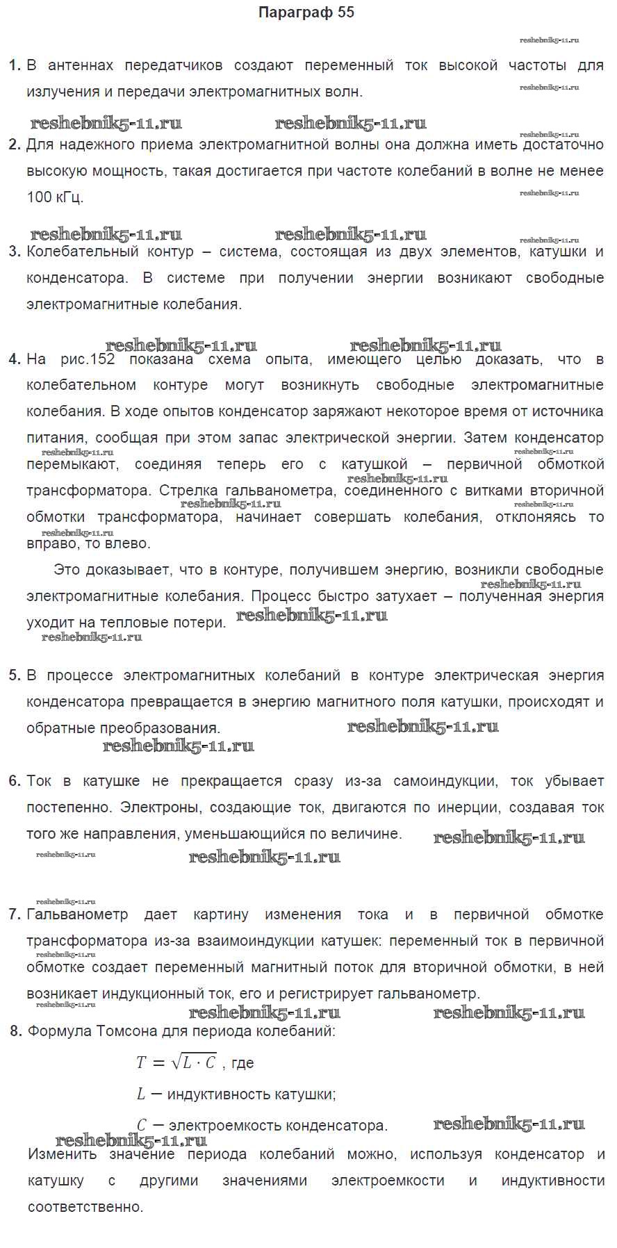 Готовая домашняя работа с ответами по Физике за 9 класс Перышкин, Гутник Учебник Дрофа 2014 ФГОС - Параграфы 55